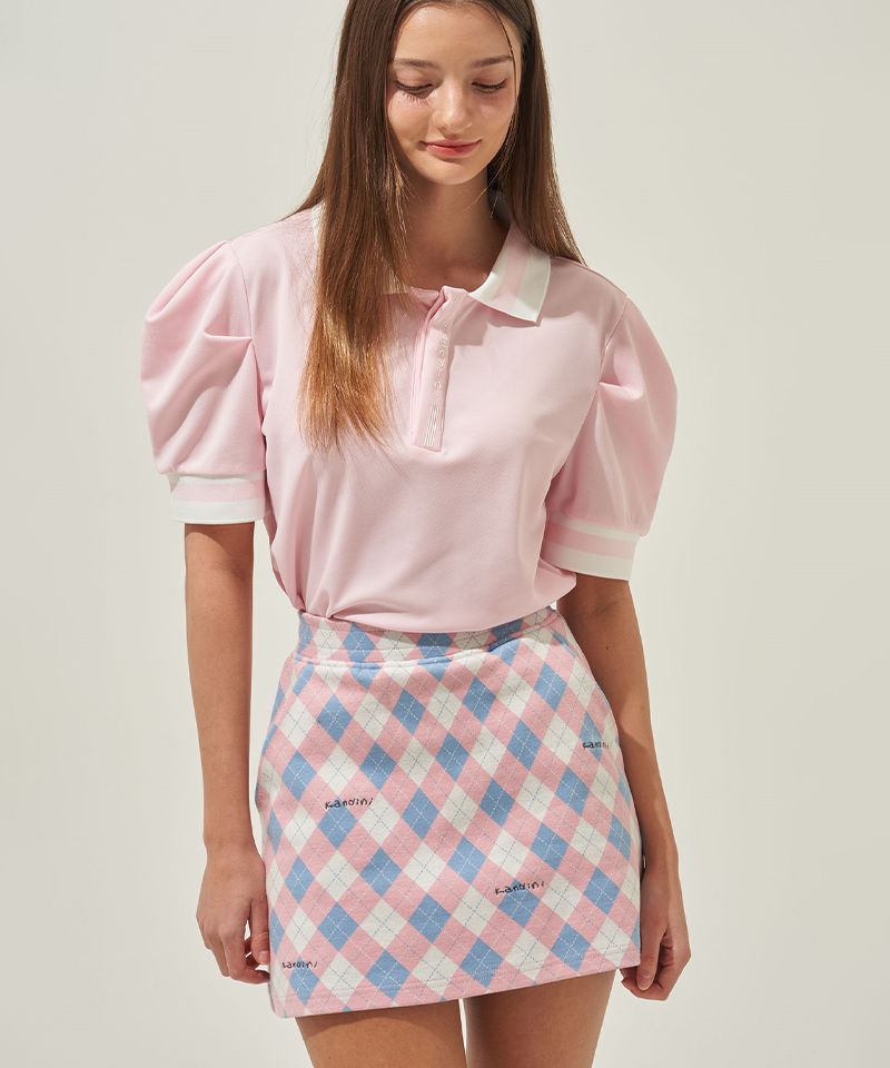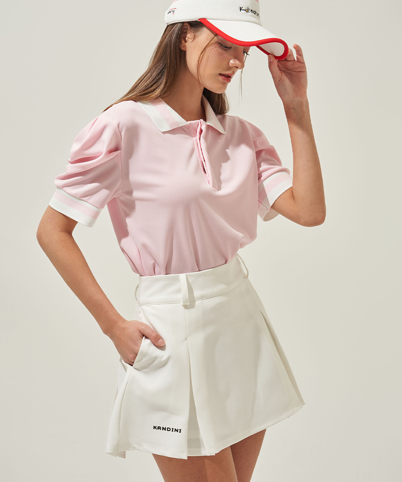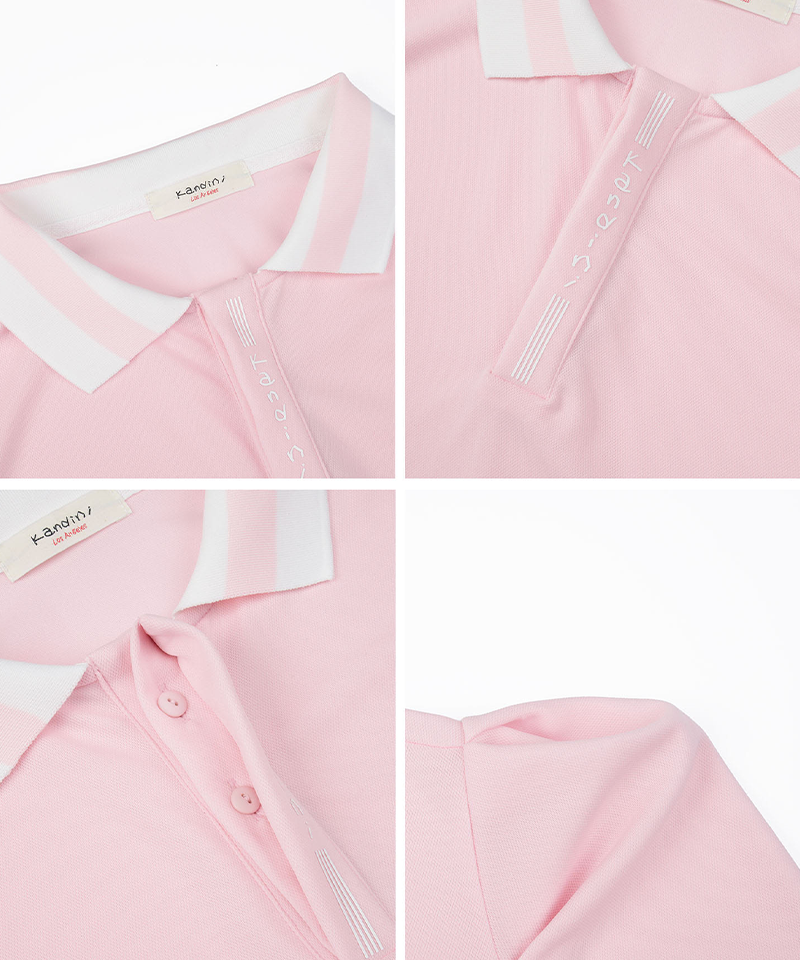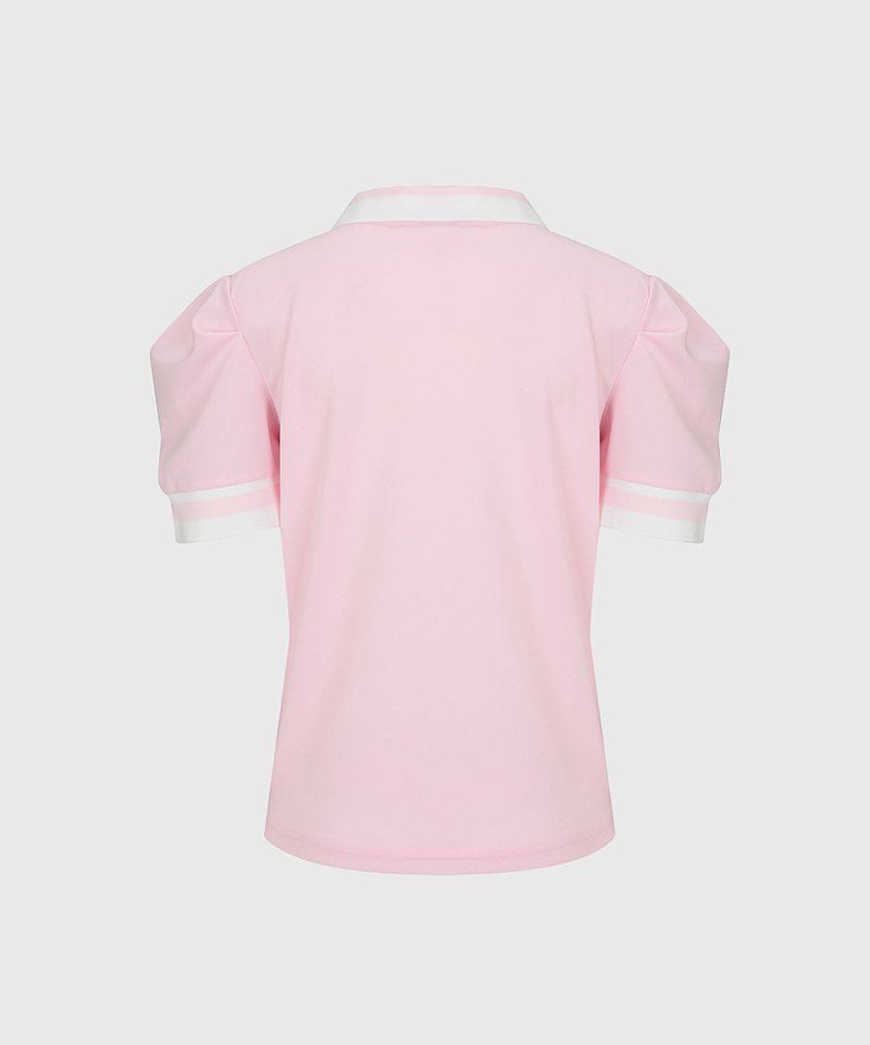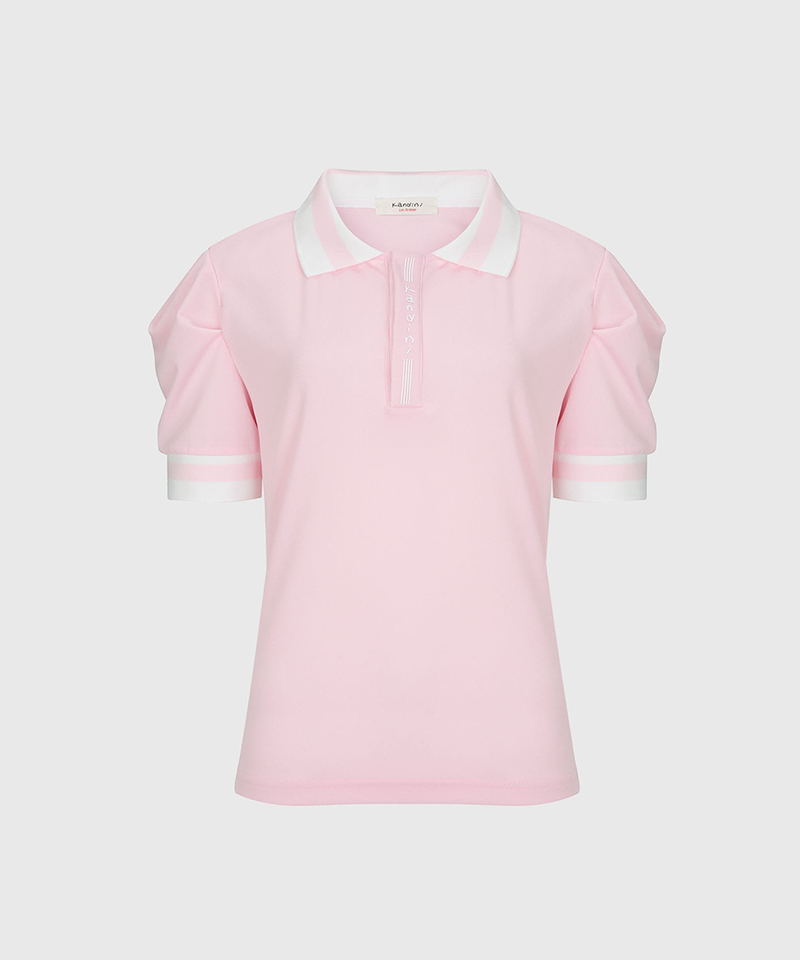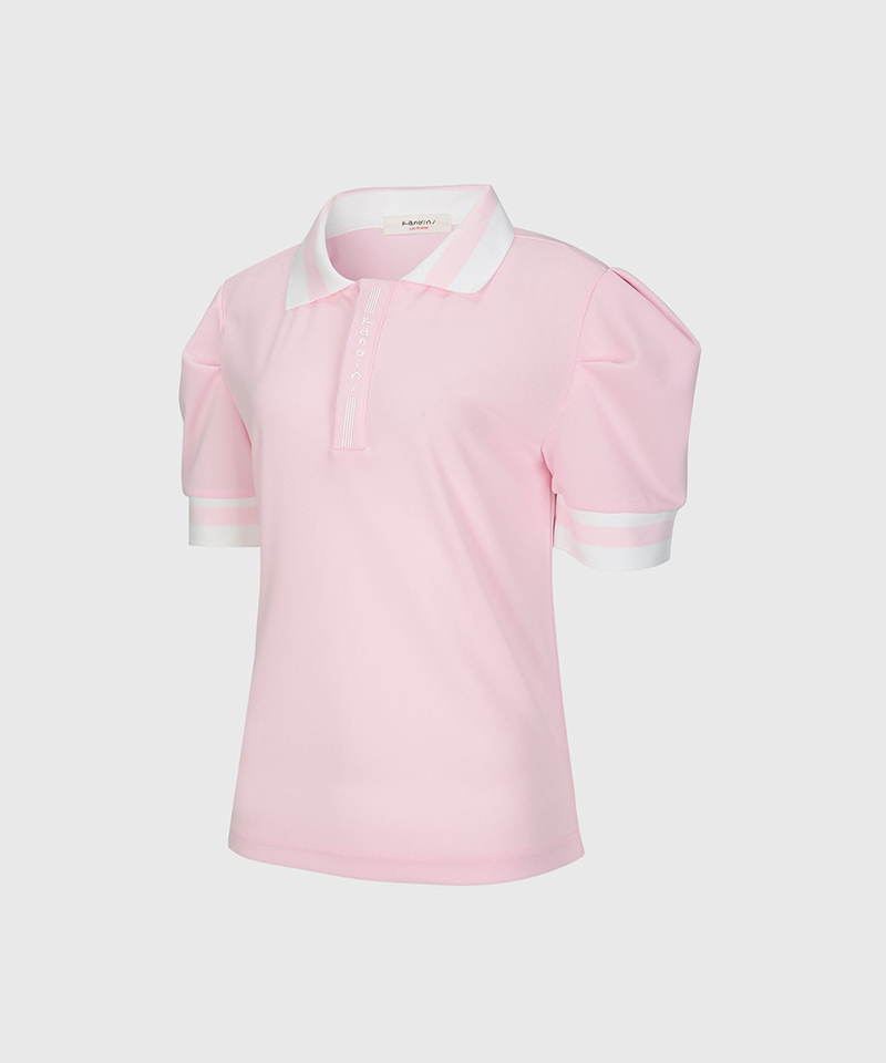KANDINI Colorblock Polo Shirts With Puff Sleeves - Pink