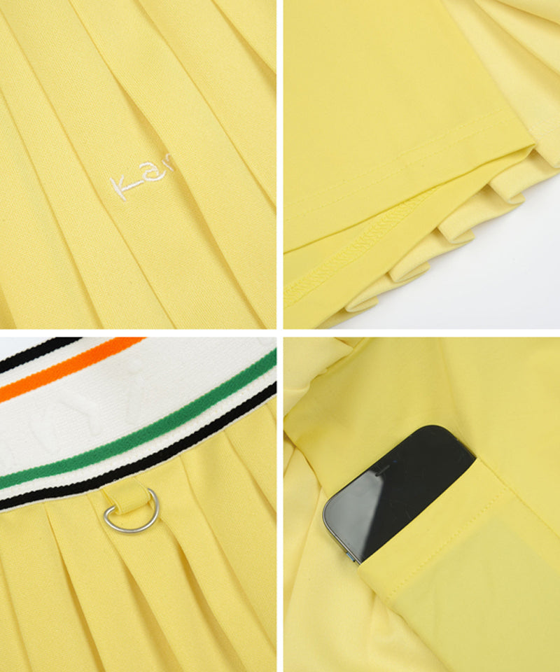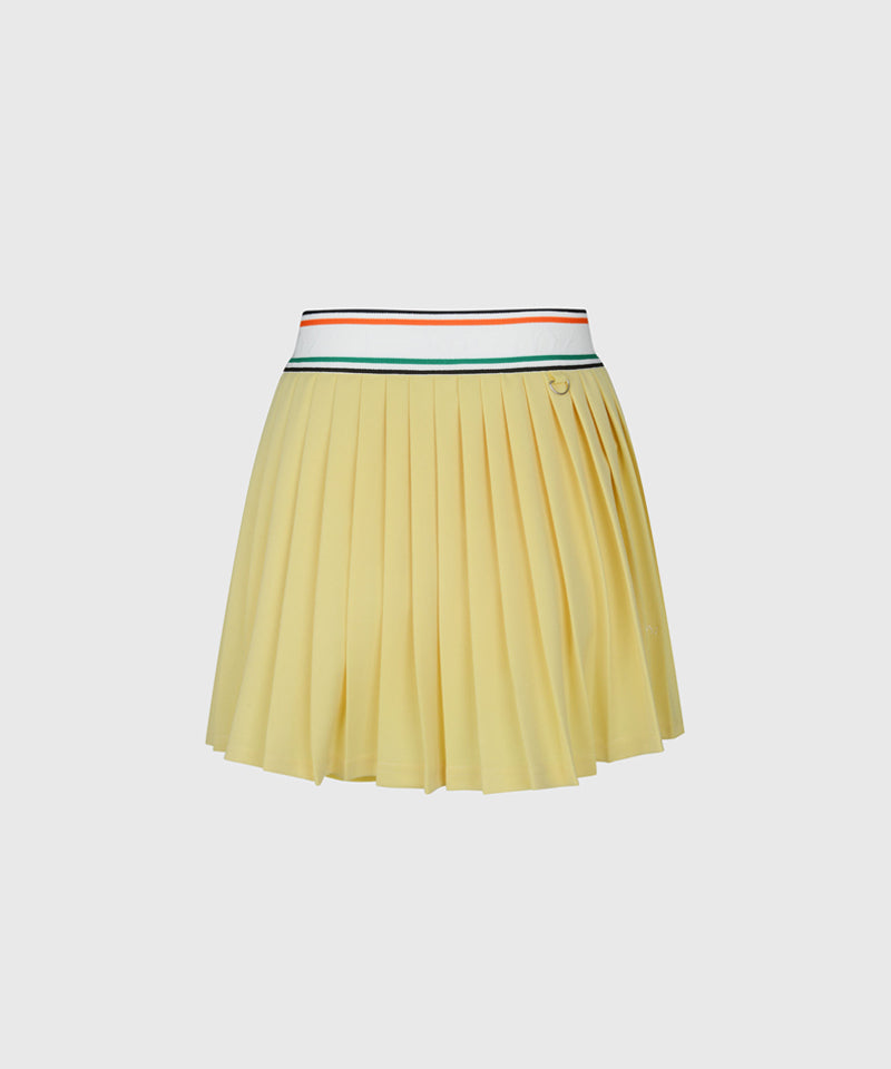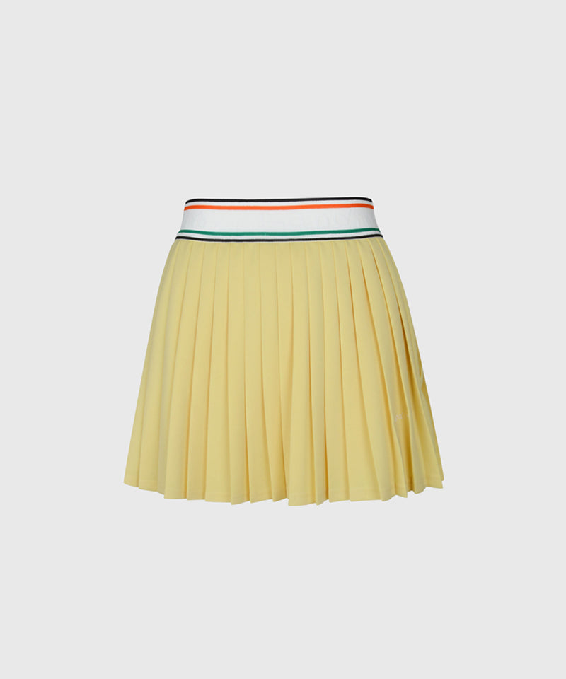 The KANDINI Elastic Band Pleats Skirt in Yellow features functional underpants with cooling properties and the brand's logo banding. The design also includes conveniently placed pockets and impressive elasticity.