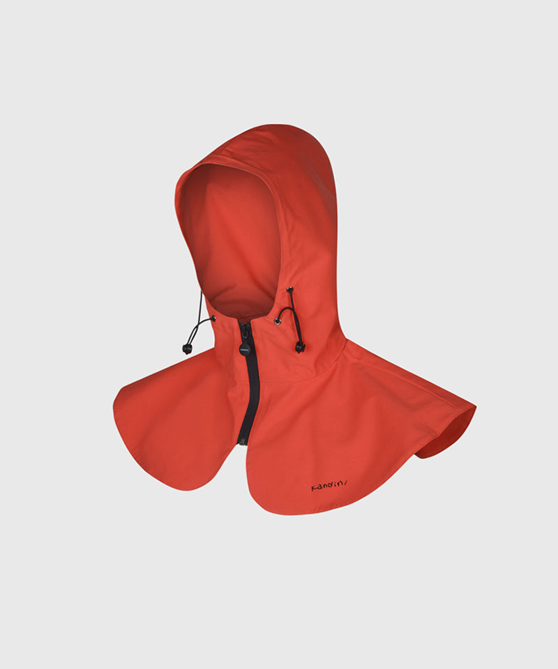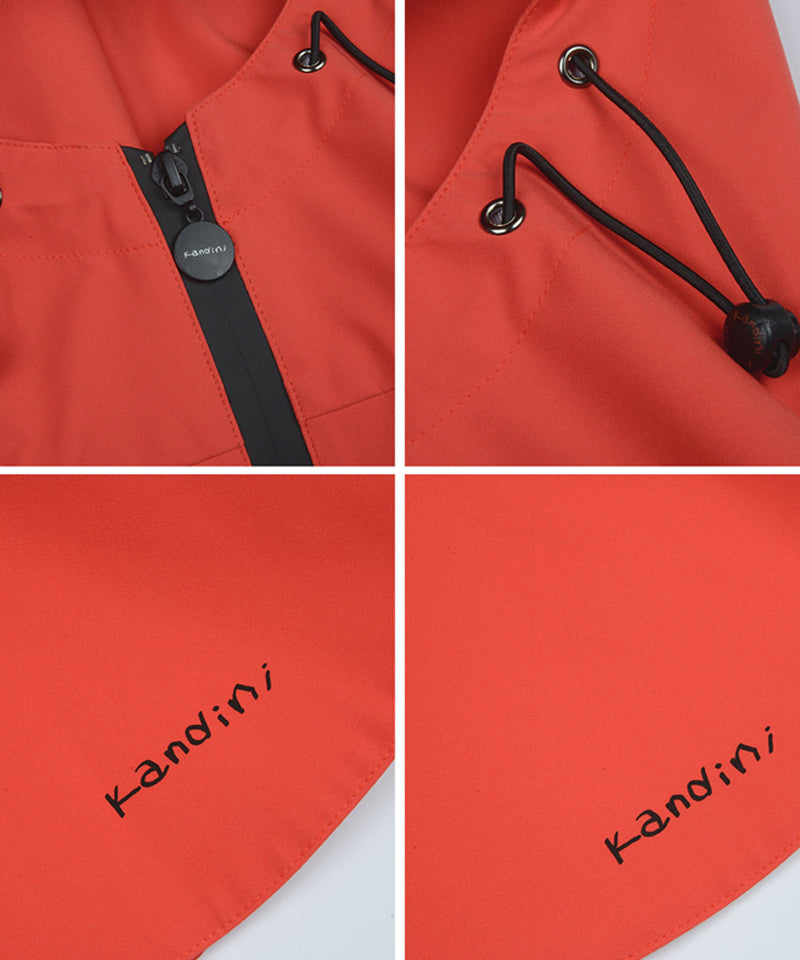 This orange KANDINI Rain Hoodie Poncho features a highly moisture-permeable and waterproof film for superior breathability. Crafted from high-quality waterproof materials, it can be effortlessly worn over any outfit. The poncho design allows for comfortable movement without any restrictions, and it also comes with a convenient carrying pouch.