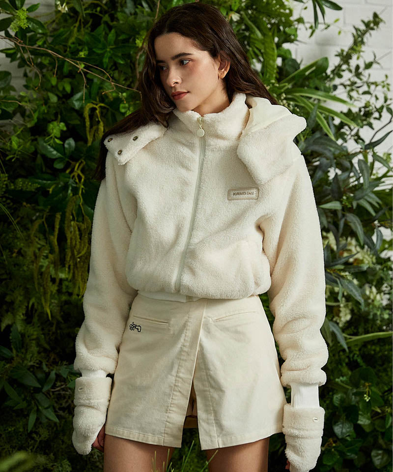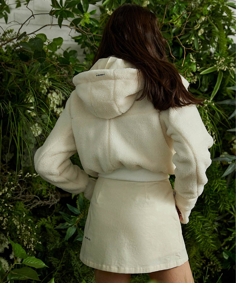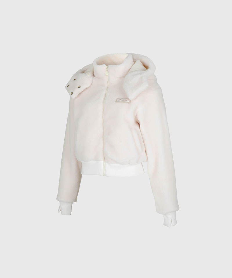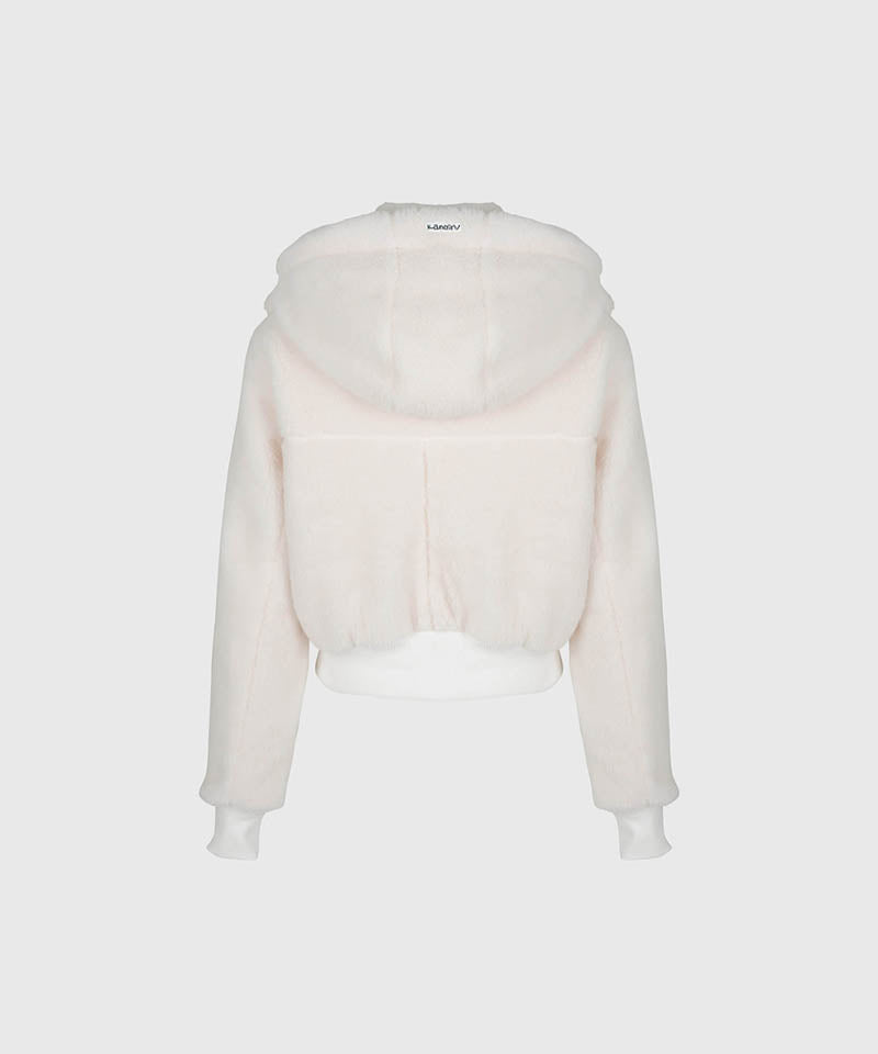 Crafted from warm and soft eco-fur, this zip-up hoodie features a large hood that not only offers extra warmth but also creates a slimming effect for the face. The high-quality lining fabric adds an extra layer of coziness, making it perfect for everyday wear.