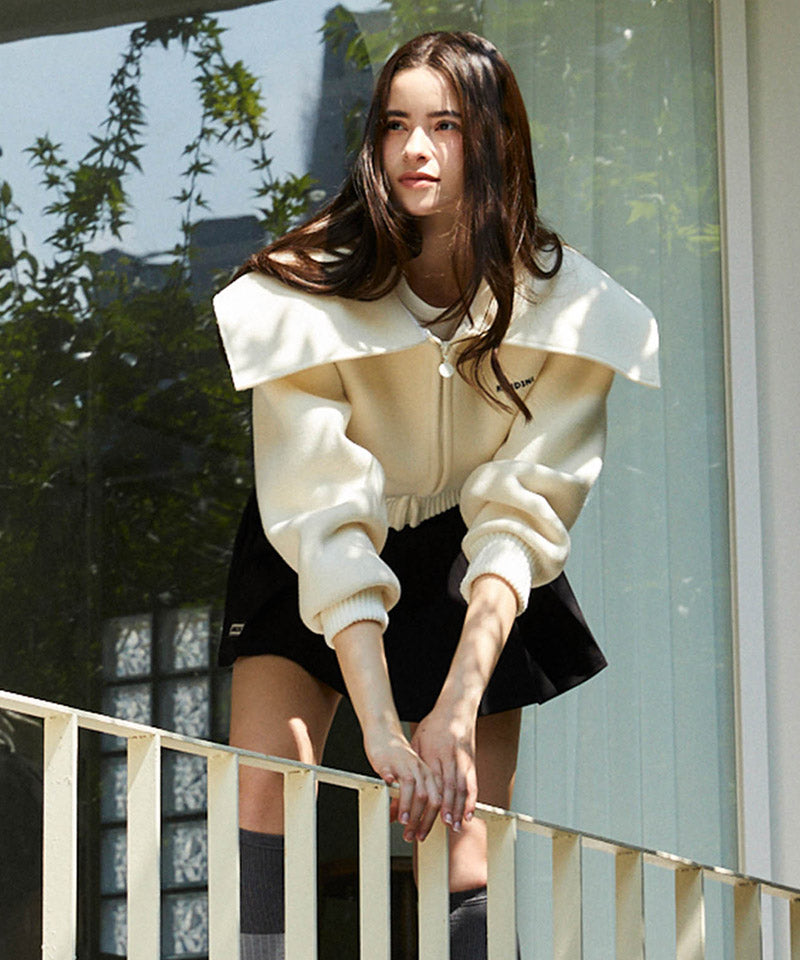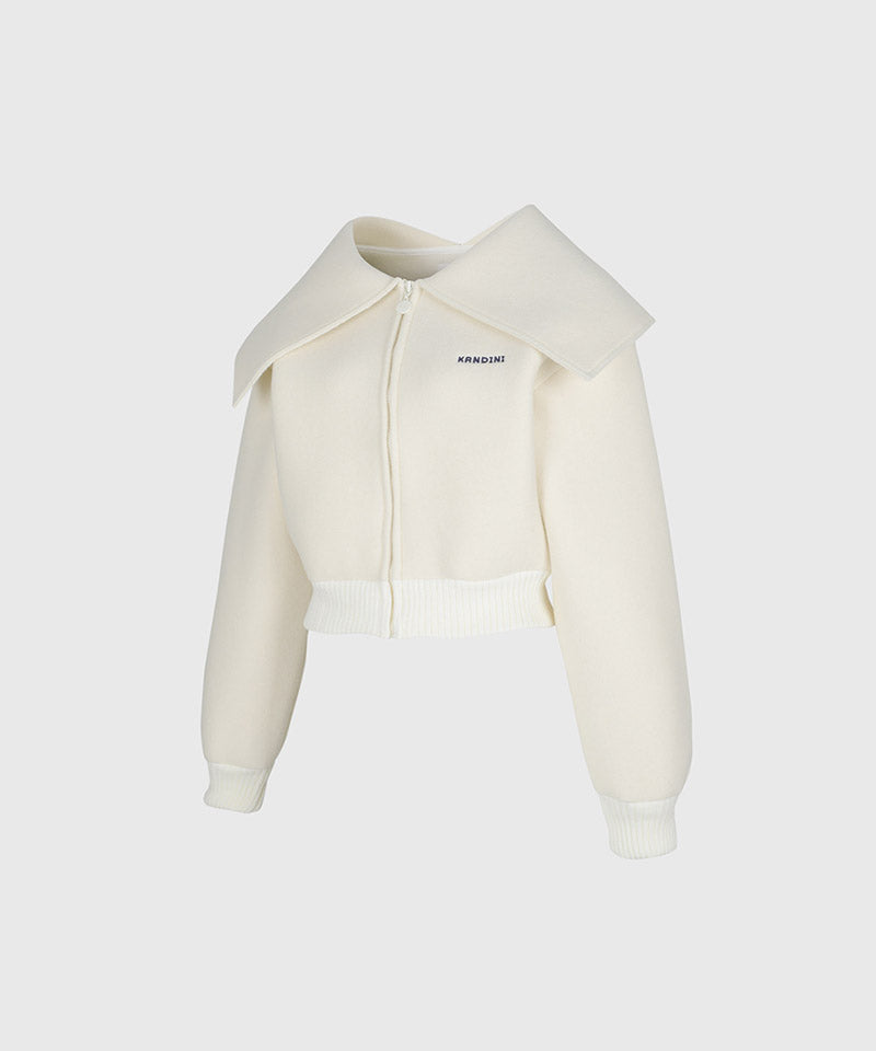 KANDINI Wide Collar Zip-up Jacket - Ivory