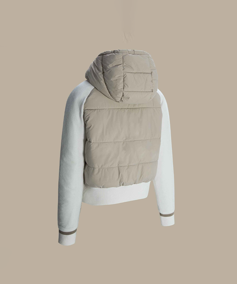 Elevate your cold-weather wardrobe with this refined knit hooded padded jacket in striking. The sophisticated blend of knit fabric and quilted padding delivers both style and warmth, while the distinctive swing silhouette creates an effortlessly elegant drape. The integrated hood provides practical protection, making this piece ideal for layering during transitional seasons. Perfect for those who appreciate understated luxury with functional design.