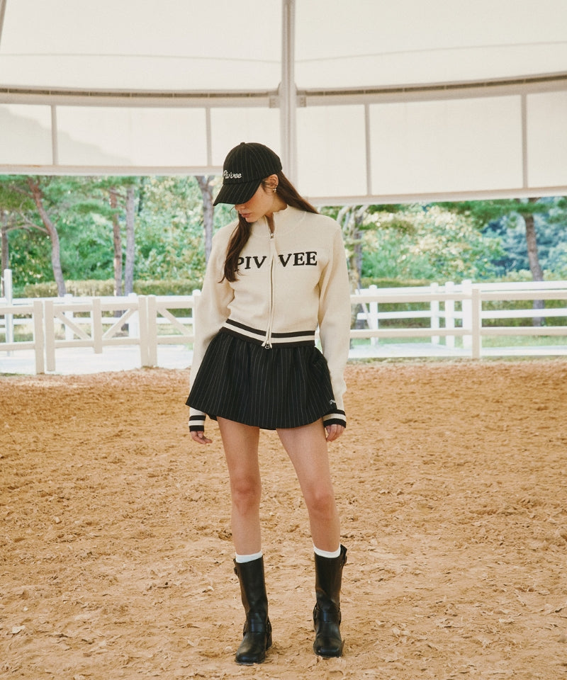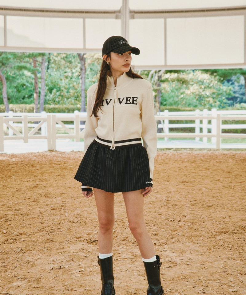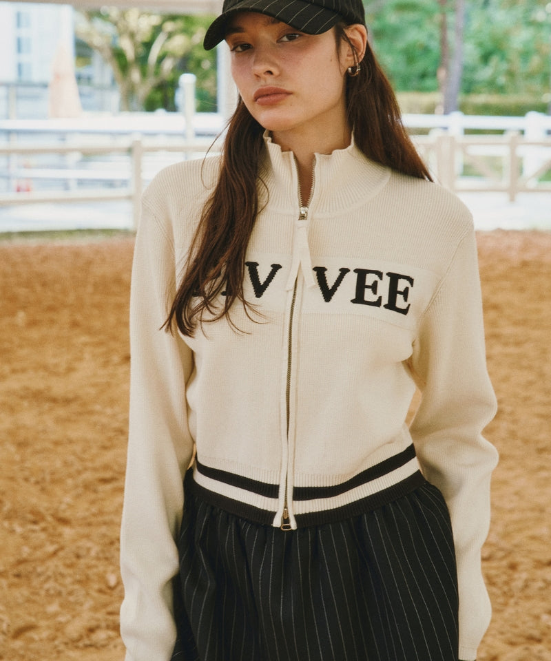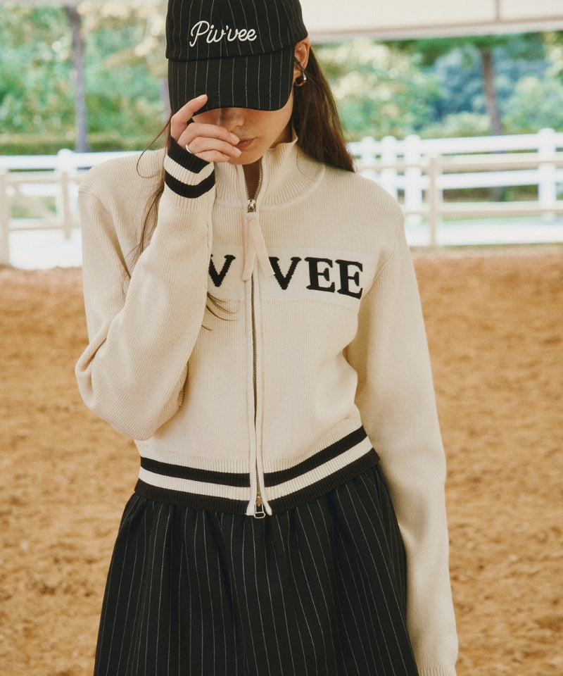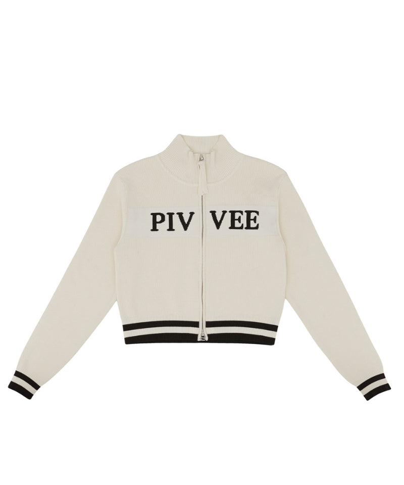 This logo jacquard knit zip-up cardigan features a front PvB logo pattern woven into the fabric. Subtle point logo color accents add a refined, casual elegance. Detailed with a zipper and fabric embellishments, it offers a semi-cropped fit in size S and a relaxed silhouette in size L. Designed as a unisex piece, it is made from a blend of 75% rayon and 25% polyester. Crafted in Korea for quality and style.
