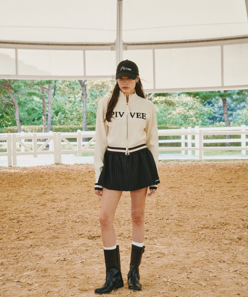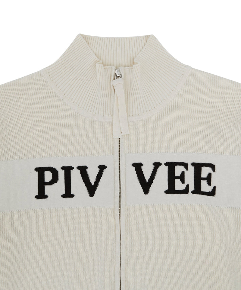 Logo Jacquard Knit Zip-up Cardigan Sand Beige