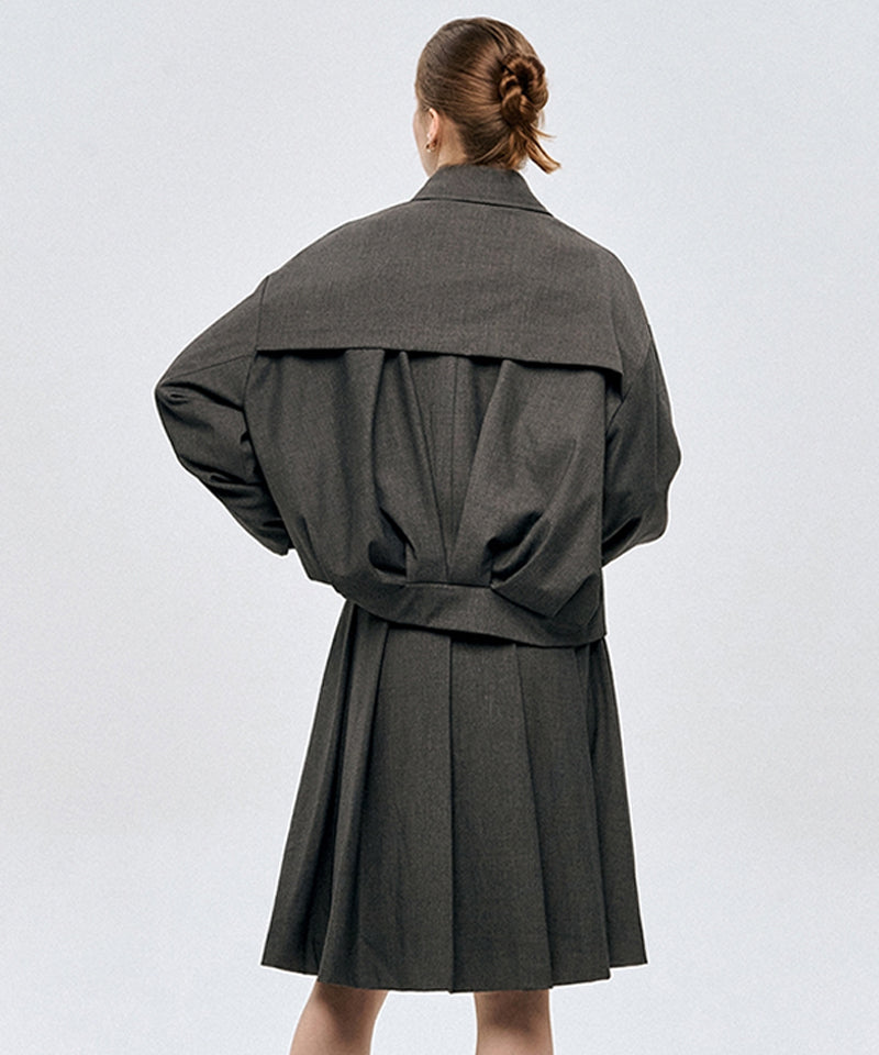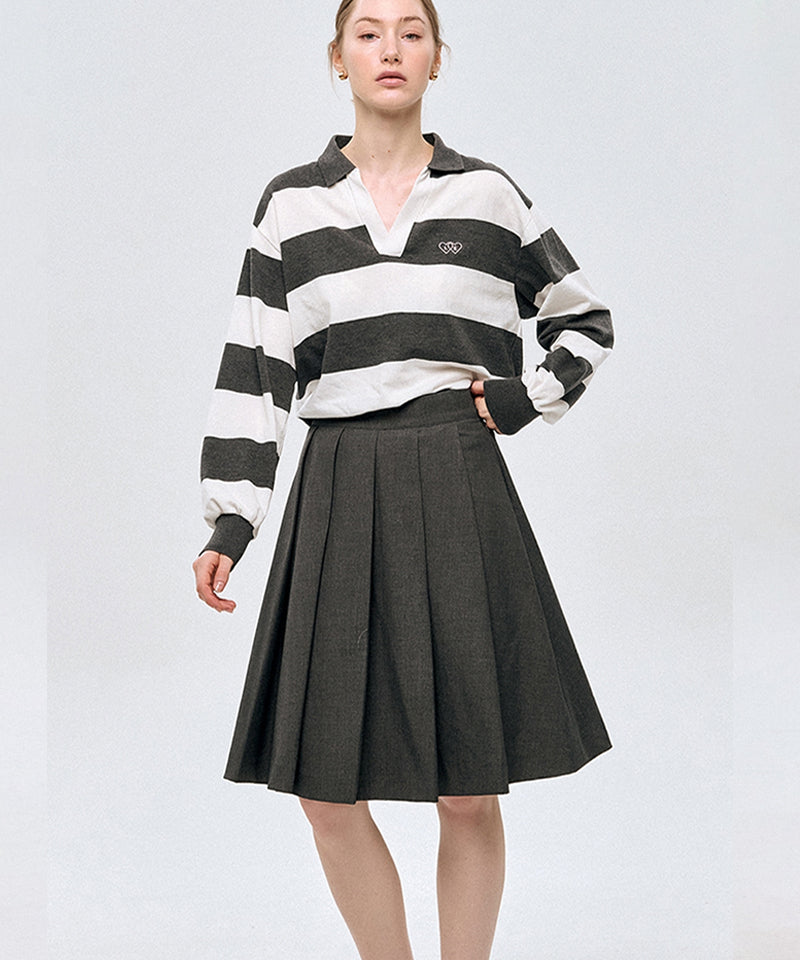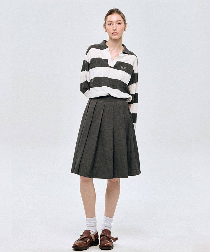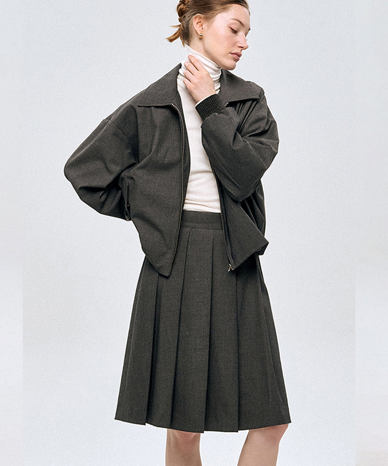 LE SONNET Classic Pleats Wool Skirt - Gray