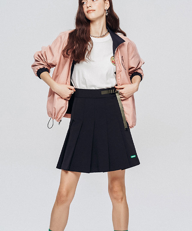 This is a simple pleated skirt made of nylon material A slight banding decoration at the back makes it easy to move, and a tape ribbon at the front can make it a little tighter. It has minimal frills rather than excessive pleats, so the lines are simple and smooth. We recommend size 1.2, so if you want to wear it a little shorter, we recommend size 1, and if you want to wear it with a slightly loose knee length, we recommend size 2.
