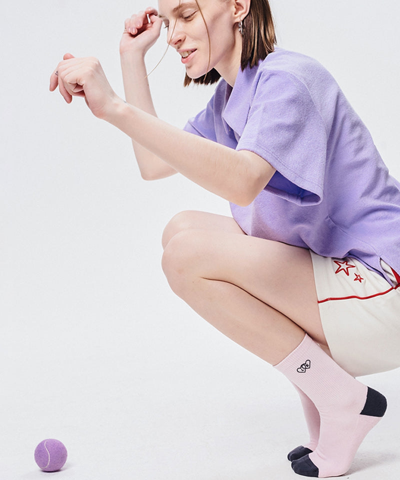 These socks are decorated with the Two Heart logo. The color scheme on the forefoot and heel adds cuteness, and the two-heart logo embroidery is the only highlight. It goes well with sneakers and will be a cute accent even when worn with sandals.
