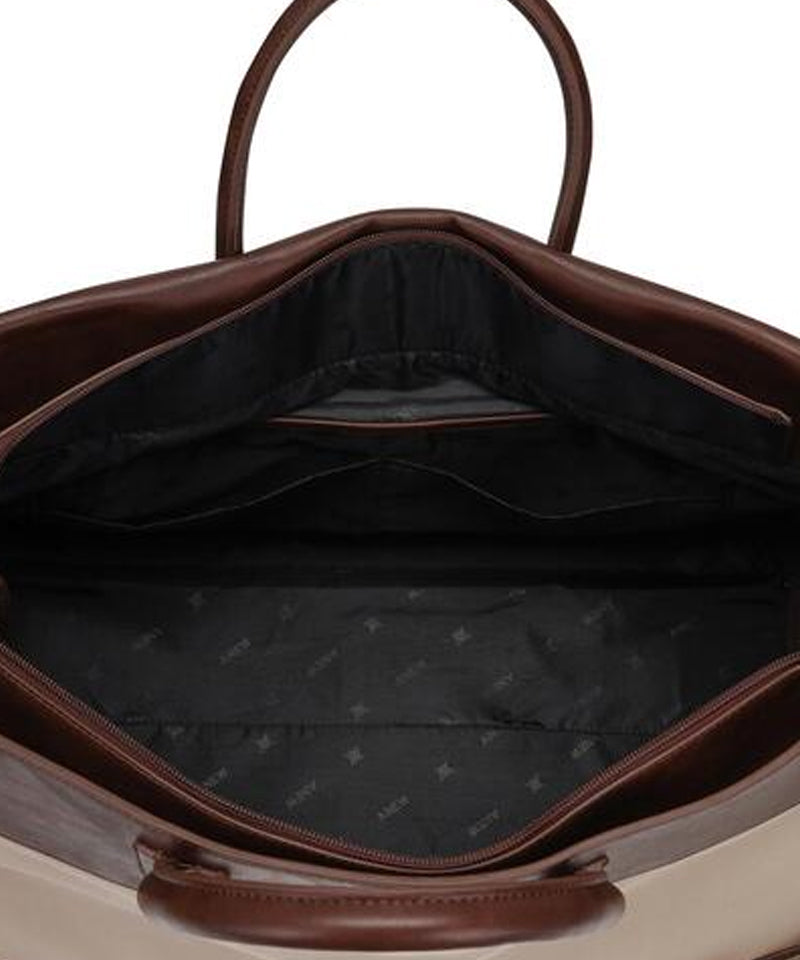 This is a classic style big tote bag, easy opening and closing with zipper type. The logo is expressed with running stitches to give it a subtle point.