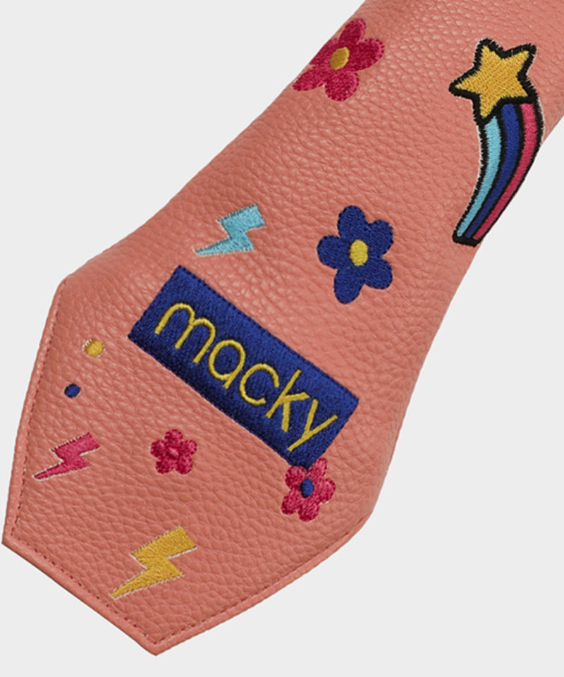 This is a head cover with a design that stands out with Mackie's unique kitschy mood. Produced in three colors: white, coral, and mustard, which go well together even when combined. The lining uses a soft material with a check pattern to safely protect the golf club head. Embroidery has been meticulously carved with high quality to enhance the perfection of the product.