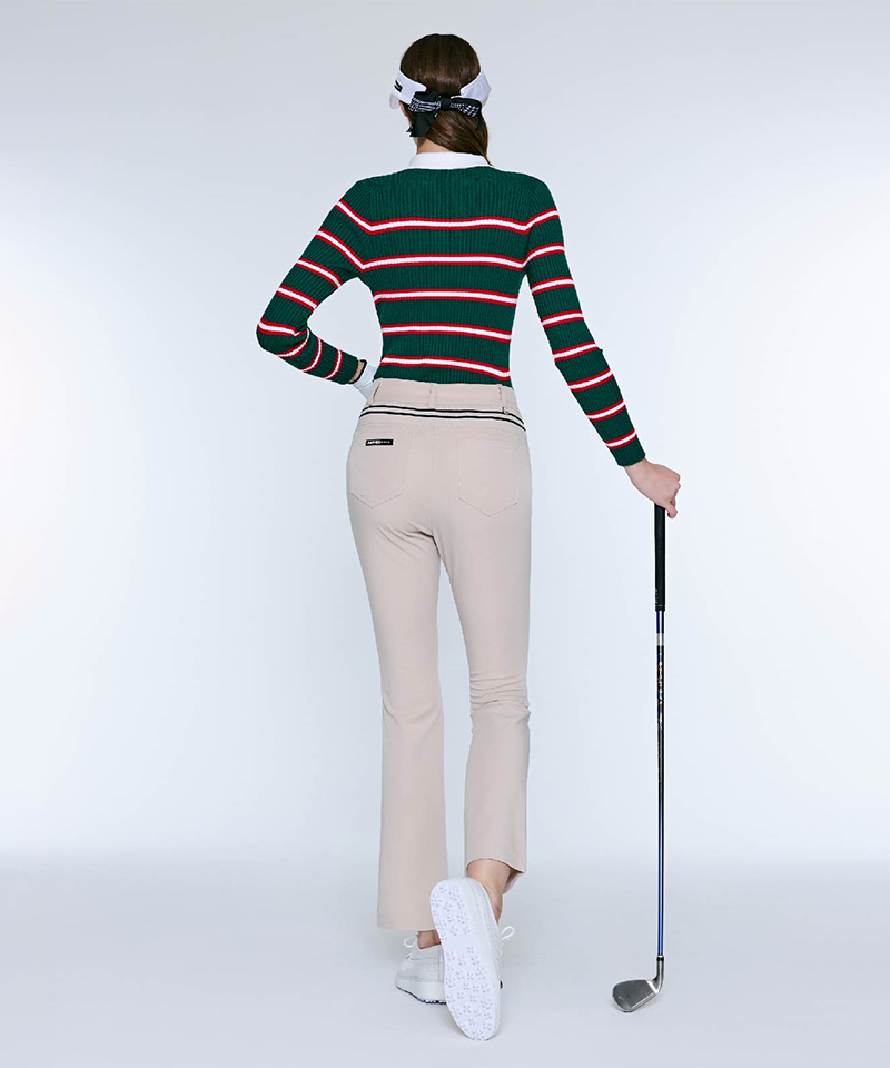 Experience refined comfort and protection with the Mahes Golf Black Label Slim Bootcut Spandex Pants. These pants offer UV blocking technology to shield your skin during outdoor activities, while the non-see-through fabric ensures confident wear. The slim bootcut design flatters your silhouette, combining style with flexibility for unrestricted movement. Ideal for those seeking elegant performance wear without compromising on function.