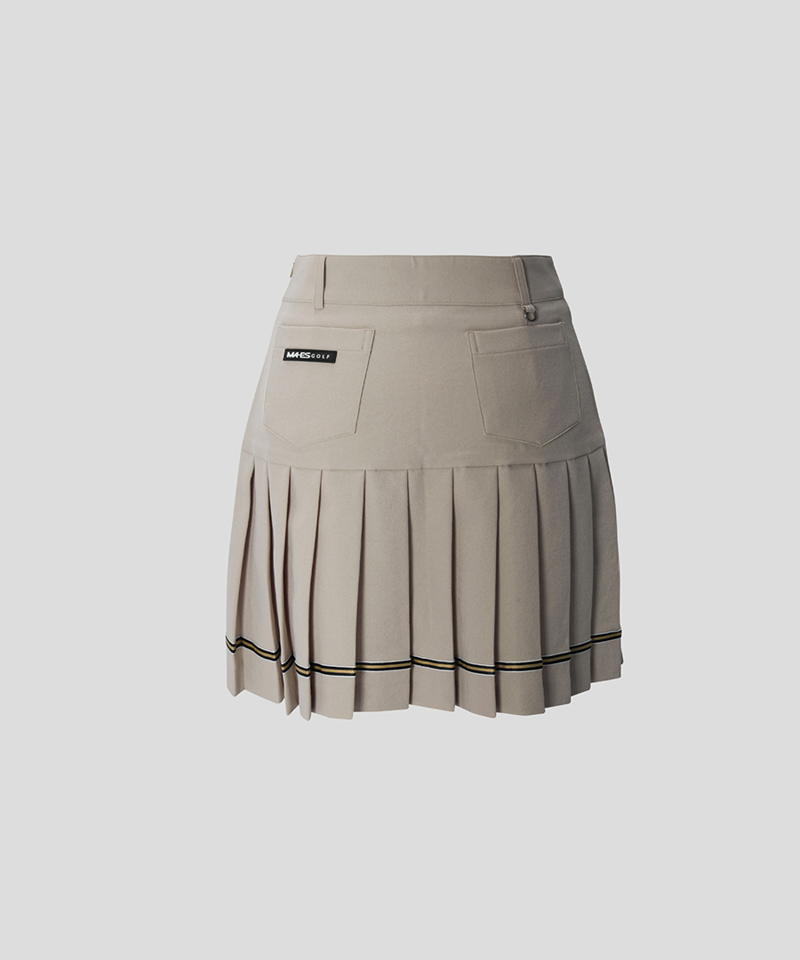 Invisible Cutting Pattern Pleated Skirt - Beige