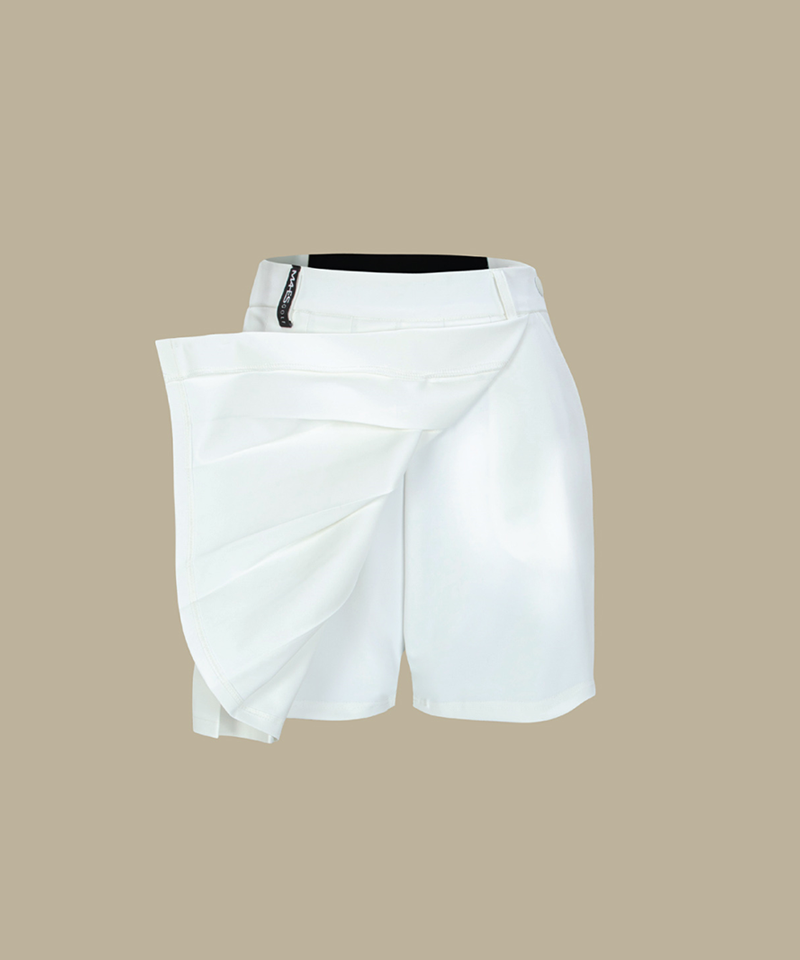 The Mahes Golf Tour Fit Wrap Pants in white are expertly tailored to provide a flattering fit that elegantly conceals common pant concerns. Their refined wrap design enhances silhouette balance while offering comfort and style, making these pants an impeccable choice for a polished and sophisticated look.