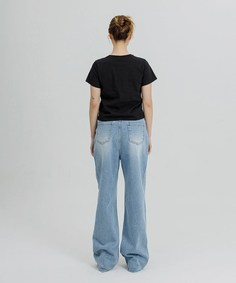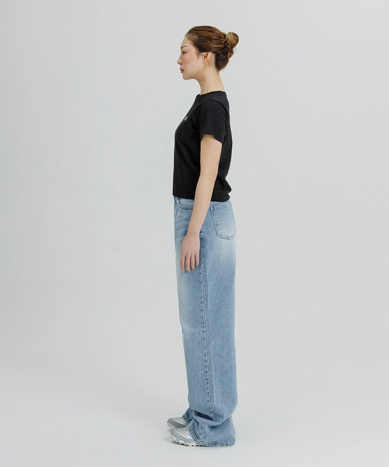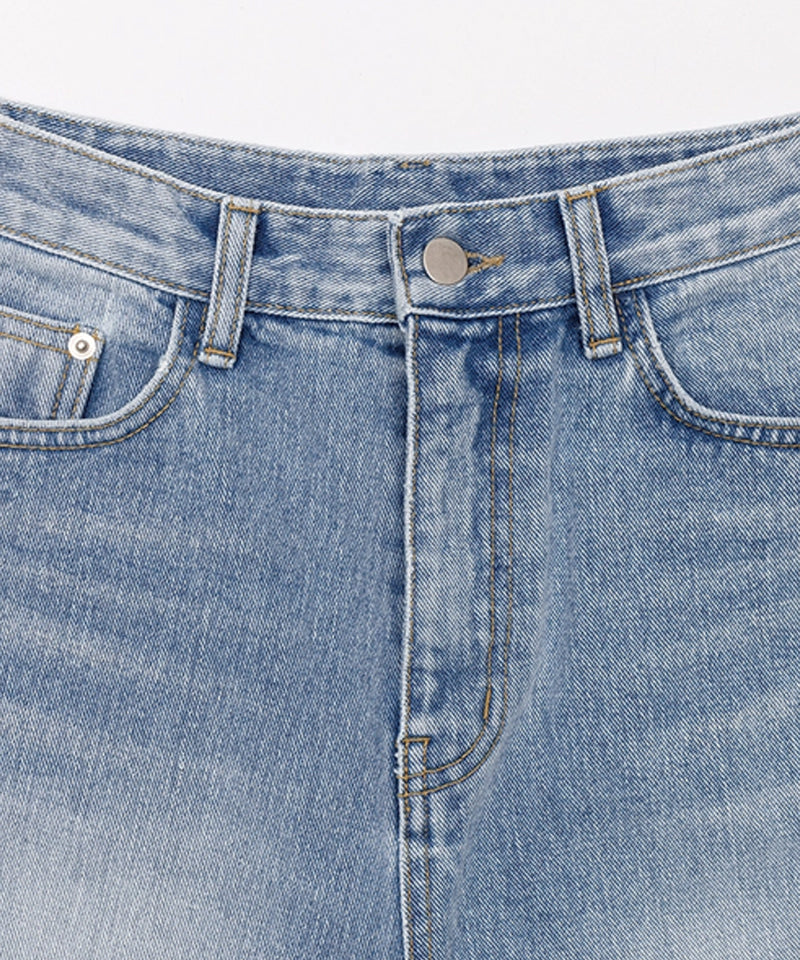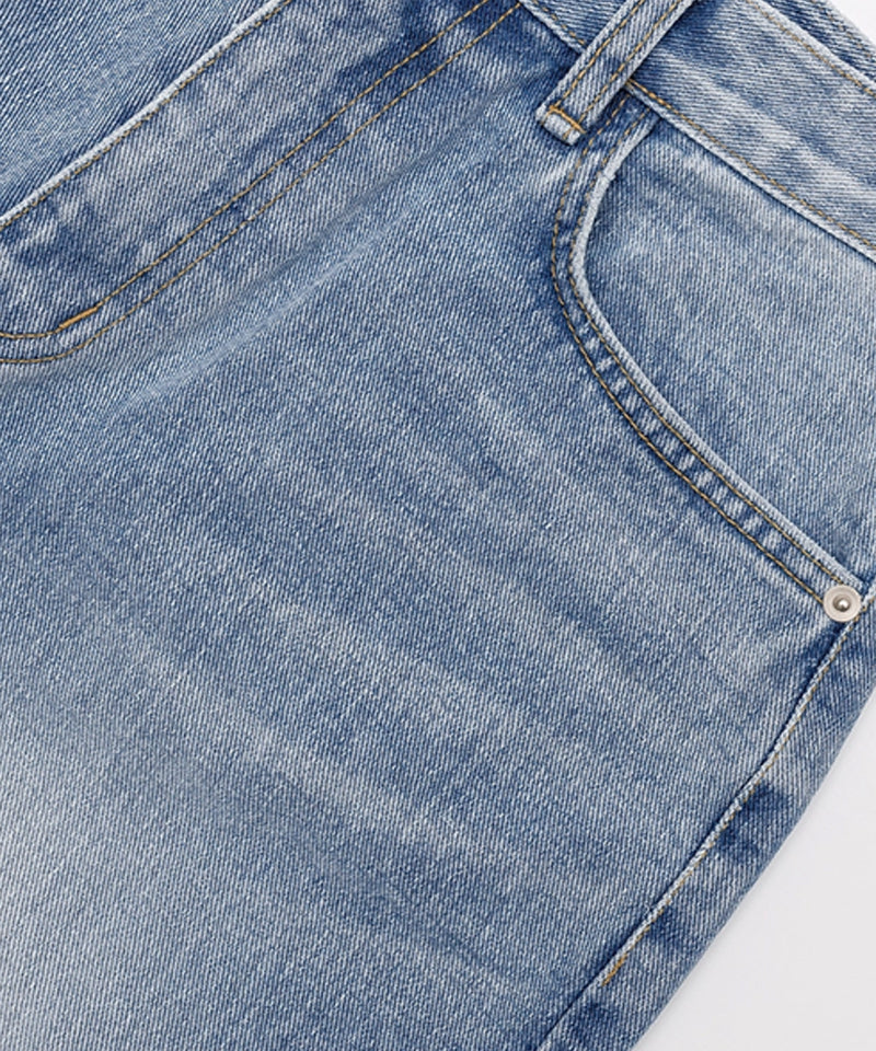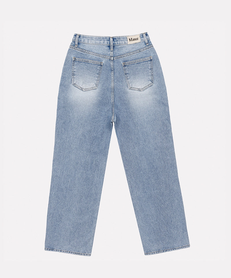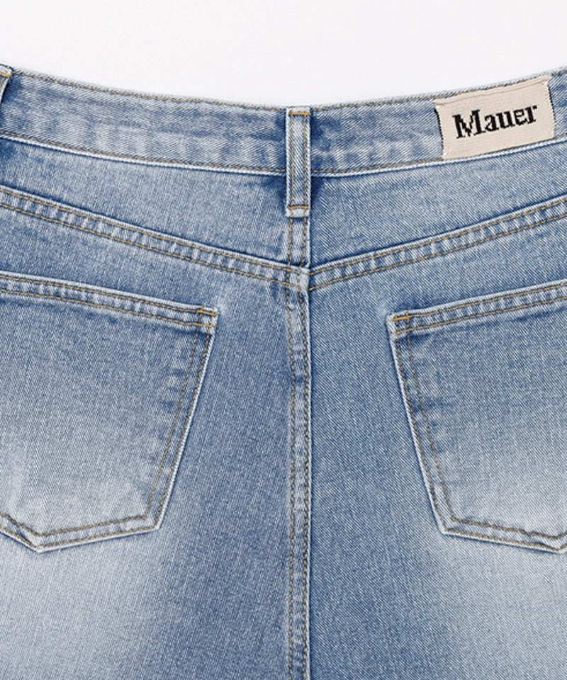 These high-waisted straight denim pants feature a slim, wide fit that creates an attractive silhouette. Designed with a classic fit and color, they’re perfect for daily wear. Natural catwashing and subtle thigh brushing add stylish accents, while the knit woven tab with the Mauer logo on the waist enhances their quality. The high-waisted, slim, wide-leg design helps elongate the legs, offering a flattering look. Available in two timeless shades — medium blue and light blue — these versatile denim pants are an essential piece that can easily match a variety of outfits.