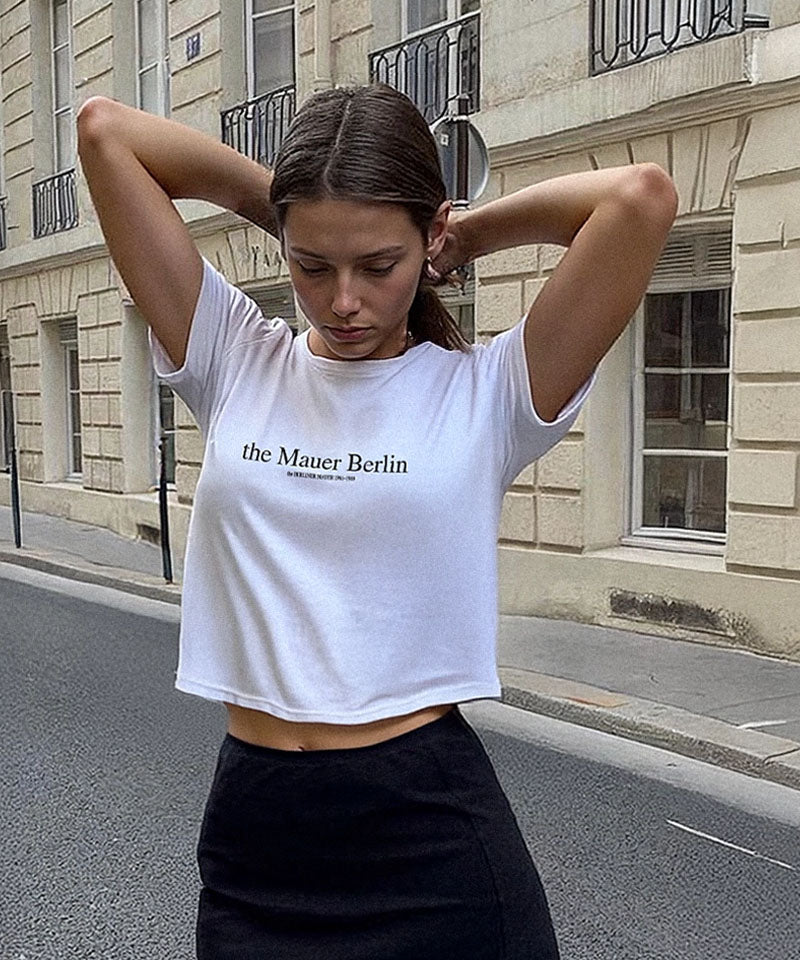 This is a signature logo T-shirt featuring Mauer's distinct color palette. Designed in a regular fit with a cropped length, it’s made from soft 20-count single fabric. Tenta processing is applied to prevent twisting and shrinkage, ensuring the T-shirt keeps its shape after washing.
