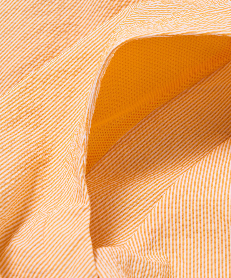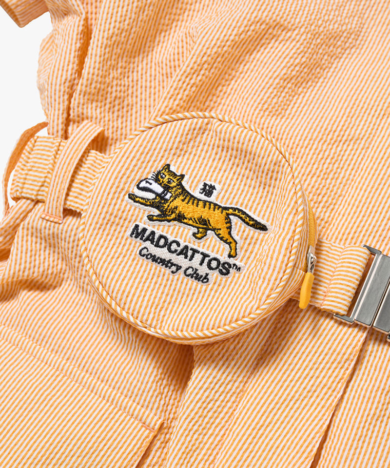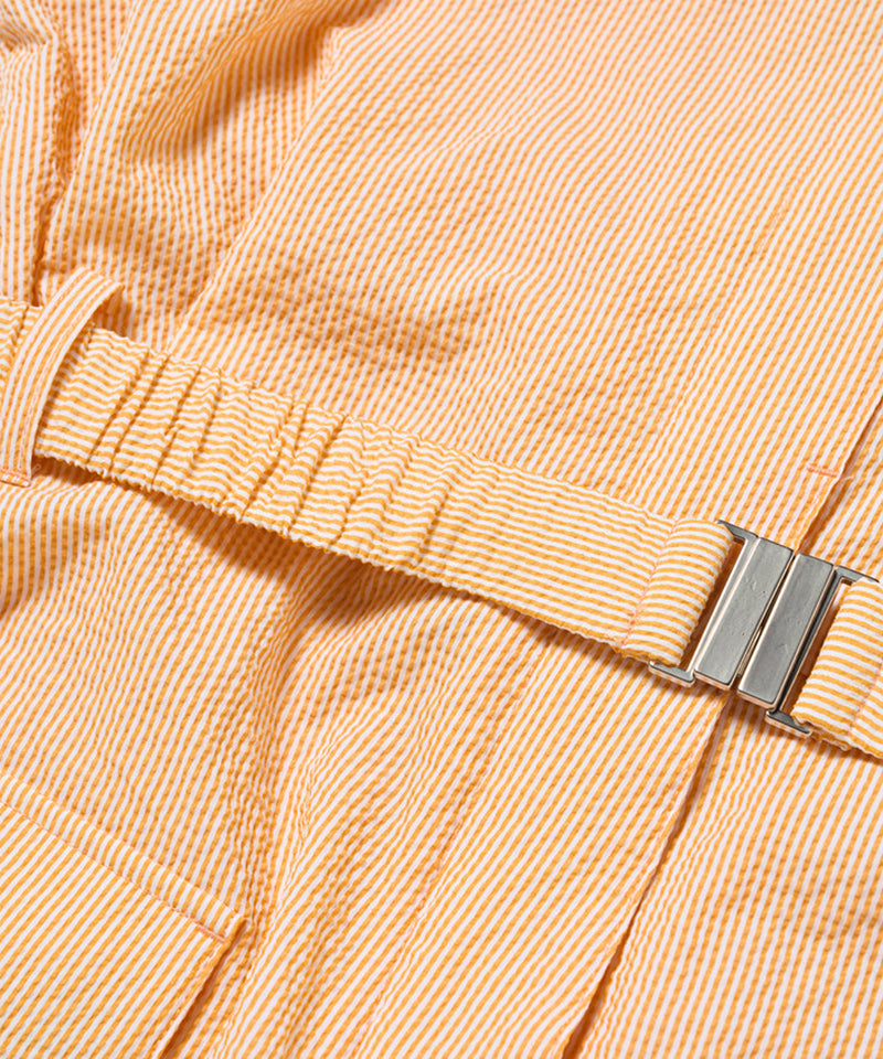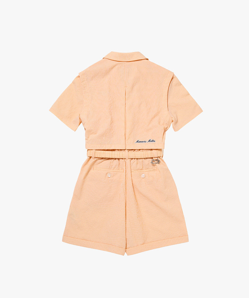 This jumpsuit is made of soft-touch seersucker material. It has excellent breathability with back ventilation and mesh hole t-dale, and a detachable ball pouch is applied to the belt.
