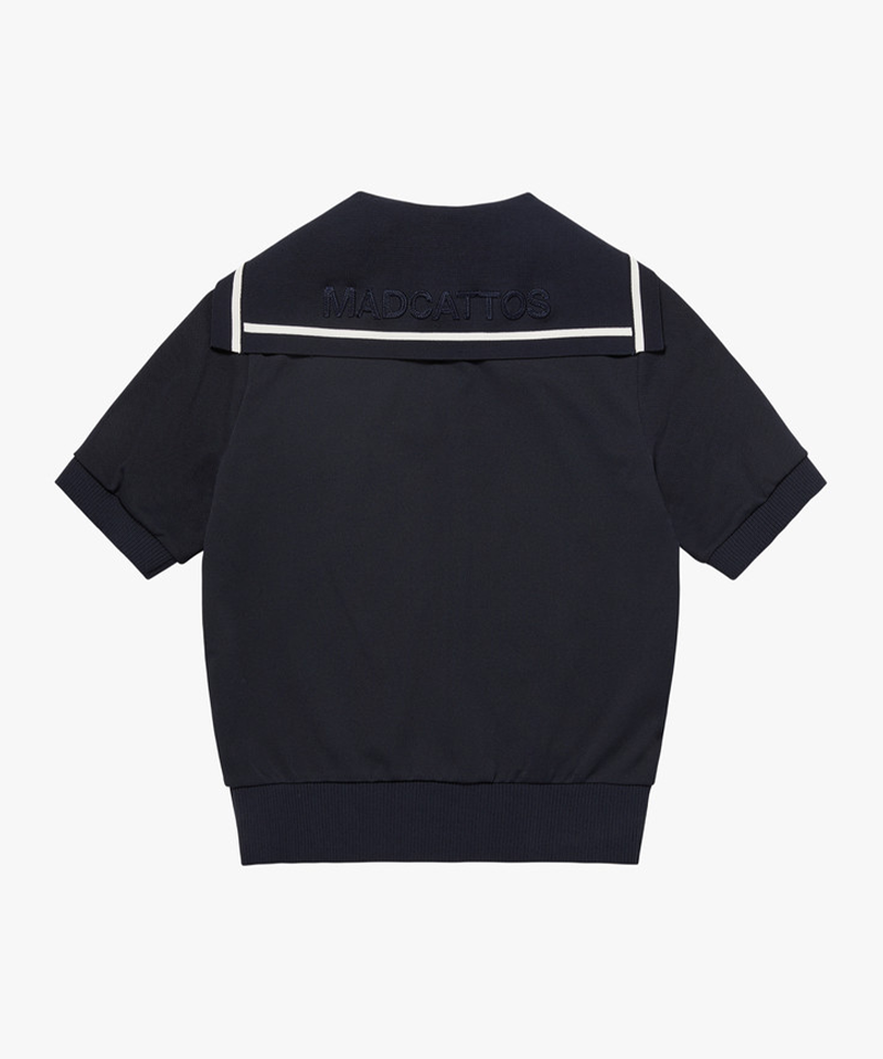 Elevate your sporty style with this Sailor Collar Short Sleeve T-shirt, crafted from tension-like pique weave fabric for breathability and flexibility. Designed for active comfort, it features excellent moisture absorption and quick-drying properties. Ribbed sleeve and hem details ensure a secure fit, while chest logo embroidery and back volume embroidery on the sailor collar add a stylish finishing touch.