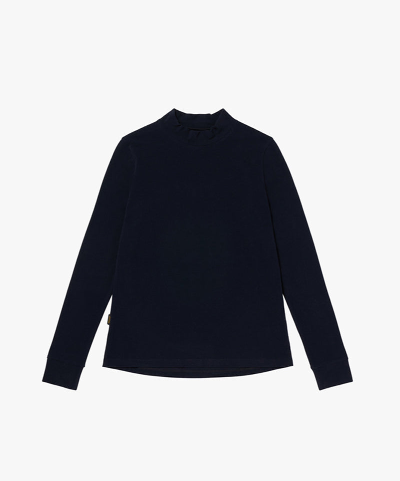 This mock neck T-shirt is made of functional material with excellent moisture absorption and heat generation. The soft touch material provides a comfortable fit and can be used in a variety of ways without any boundaries between the field and daily life.