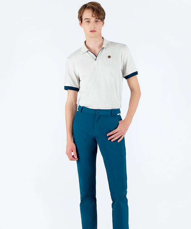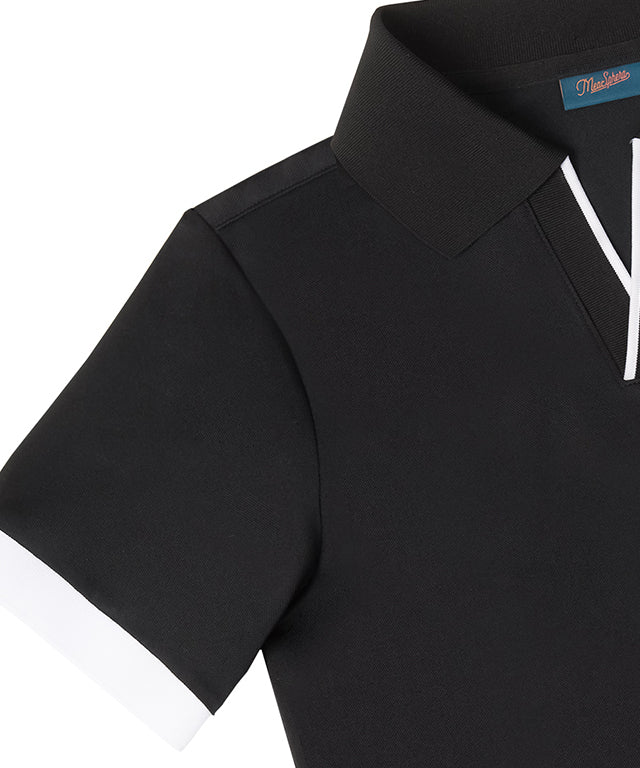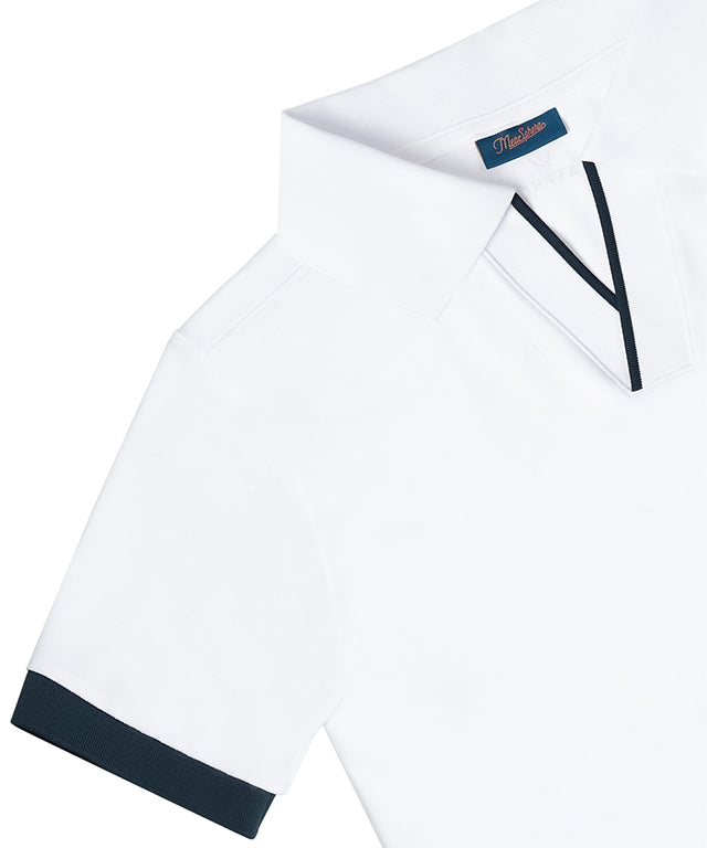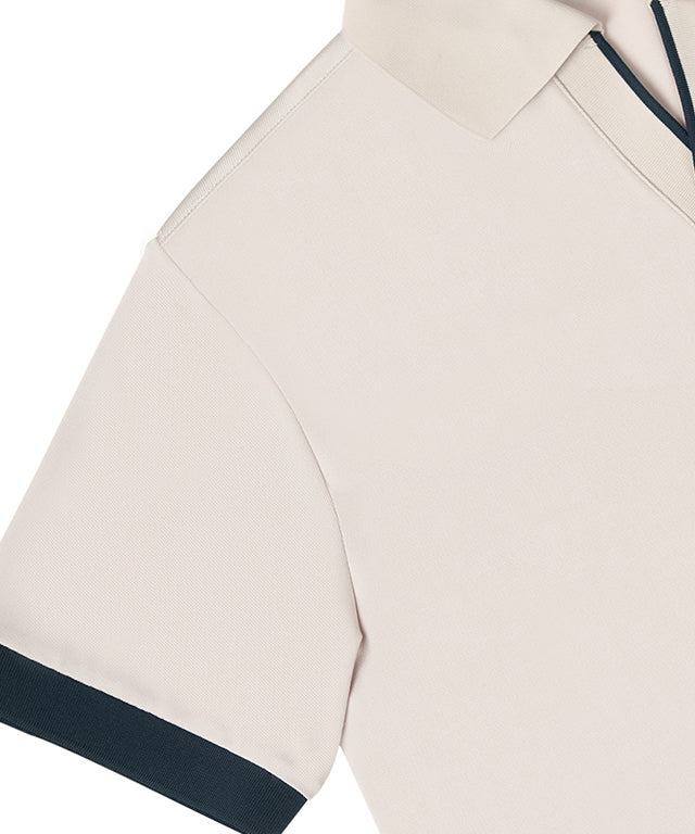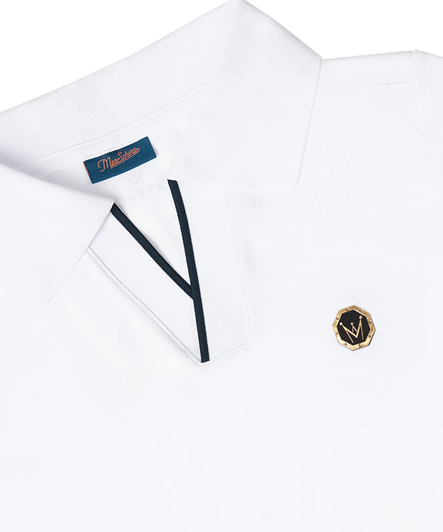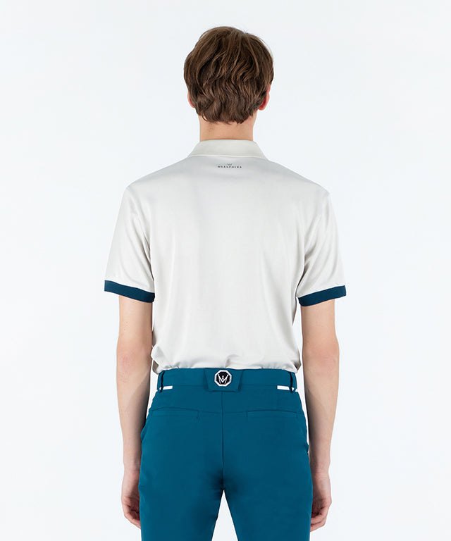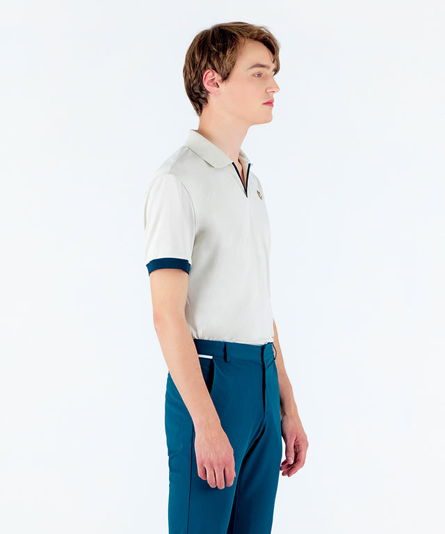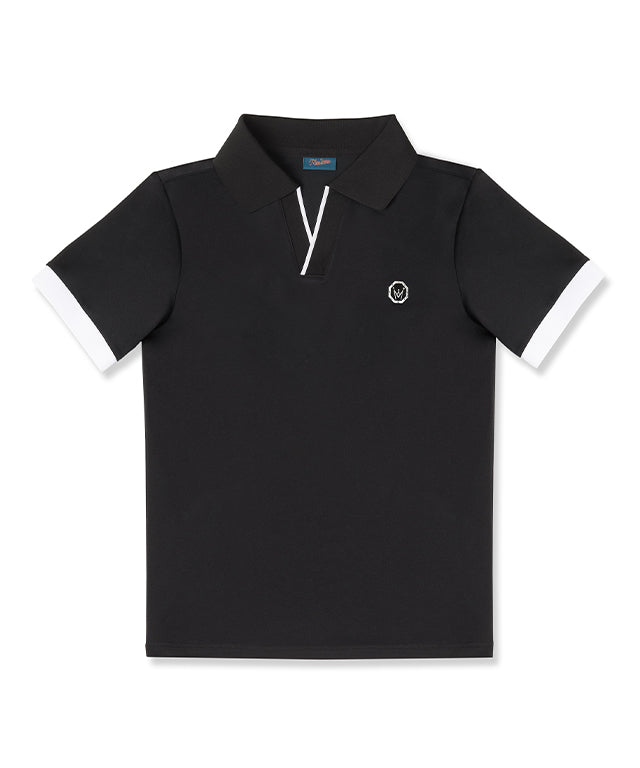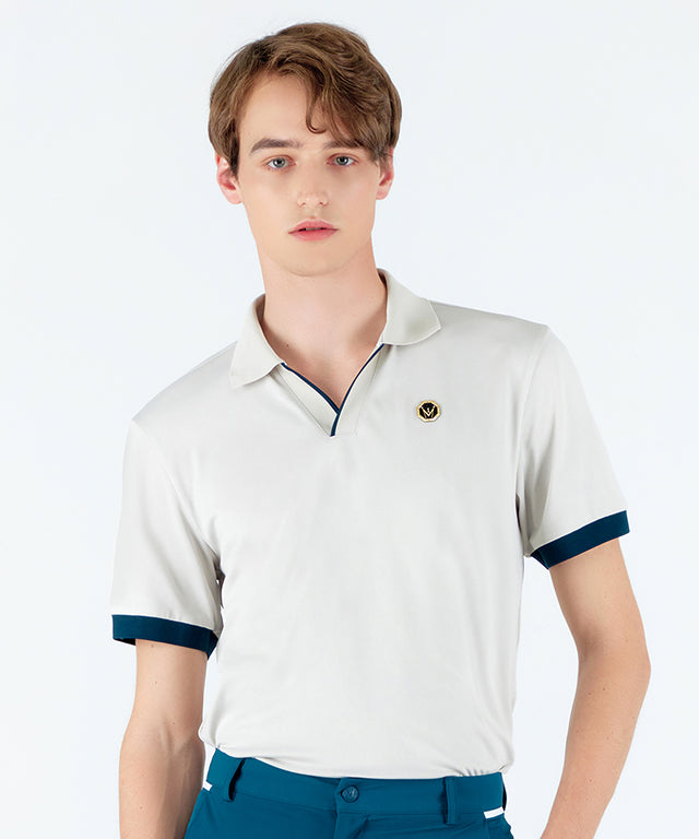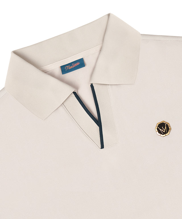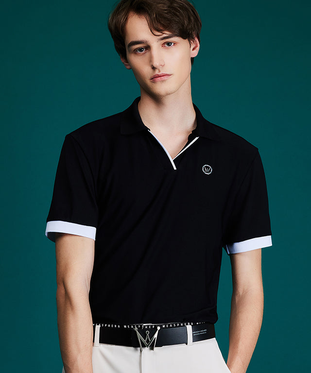PQ material with a soft touch and excellent breathability is made of HI-MULTY yarn. Open collar T-shirt with a simple design and neckline variation. Product with Misfera's exclusive octagon symbol as a point.