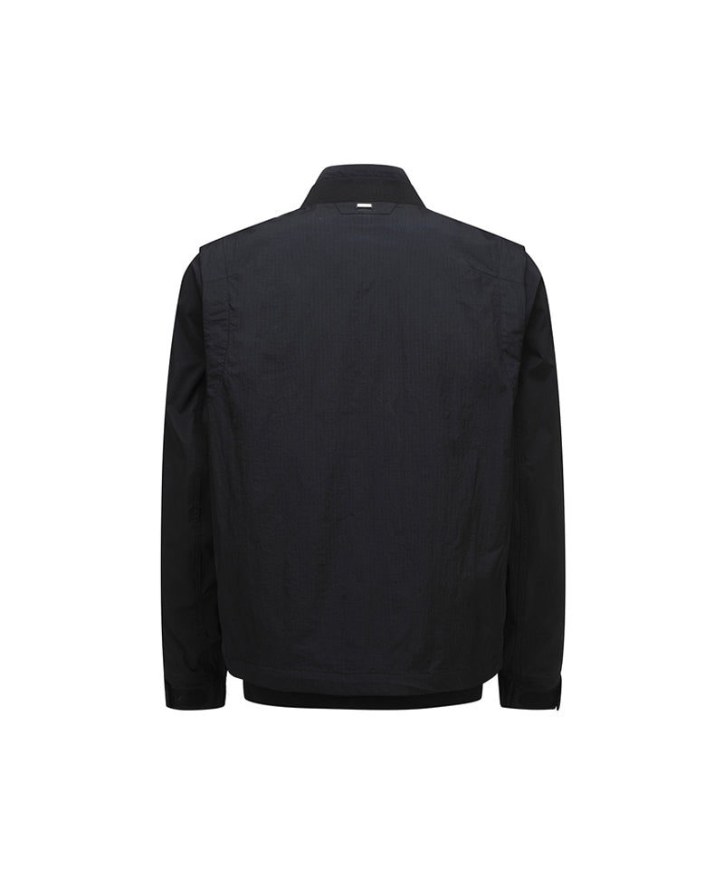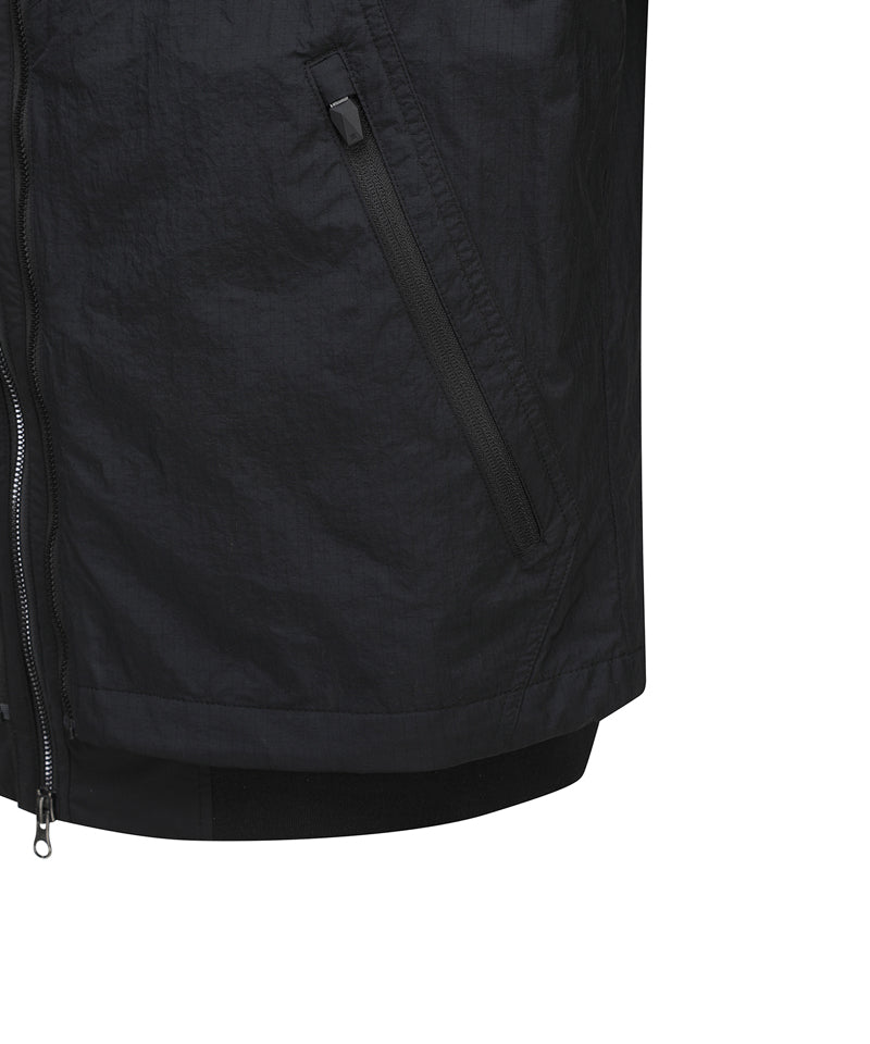 This is a 3-WAY windbreaker that can be used in a variety of stylish ways for golf and everyday life. The outer shell is made of a ribbed material with a subtle gloss to add a casual mood, and the inner shell is made of ribbed material. Nylon spandex material is used to provide a comfortable fit when swinging. Pocket on the outer shell there are plenty of them for easy storage and the relaxed fit allows for a variety of looks even when worn separately as a vest.