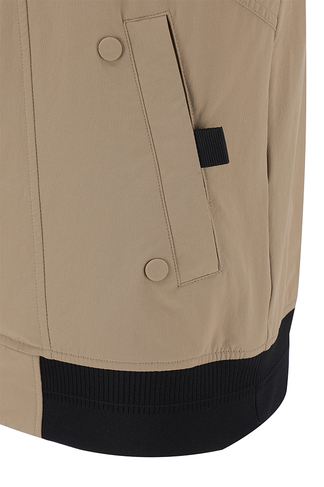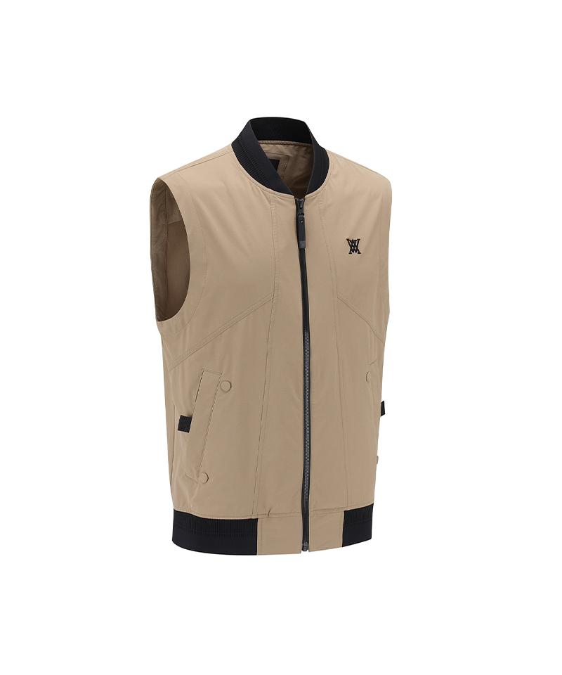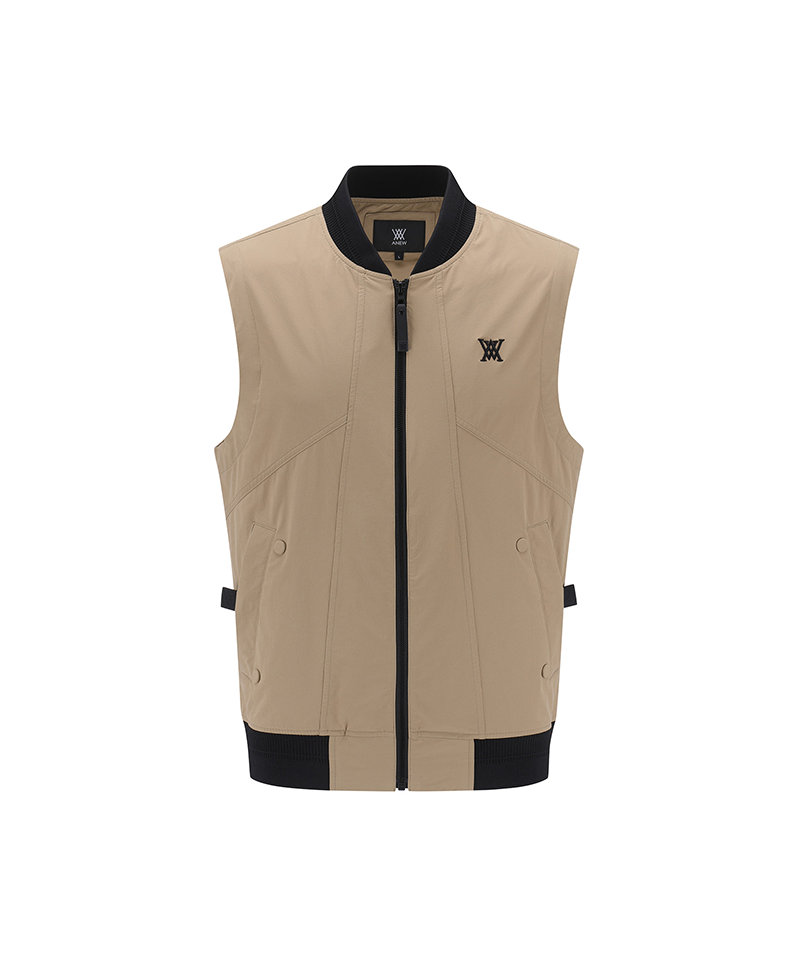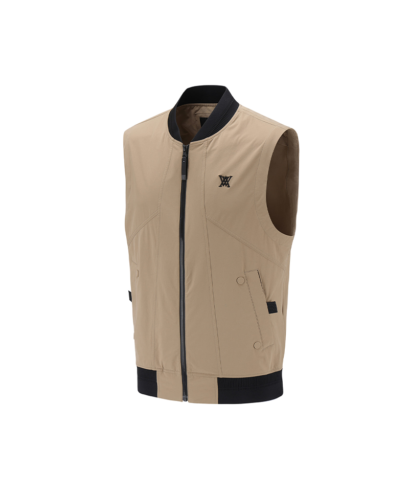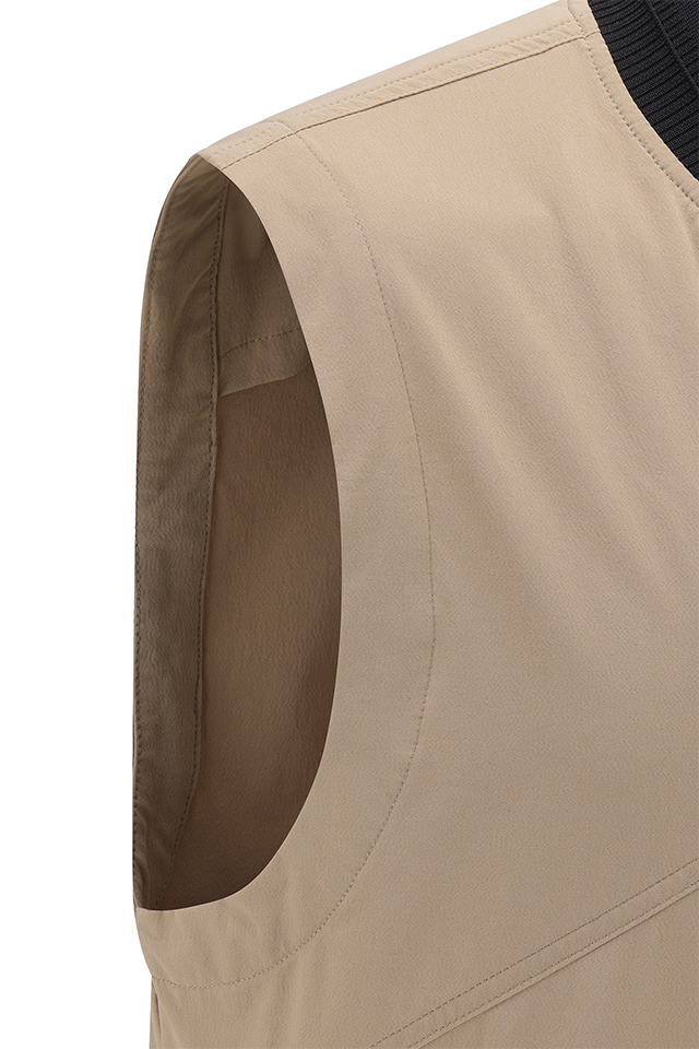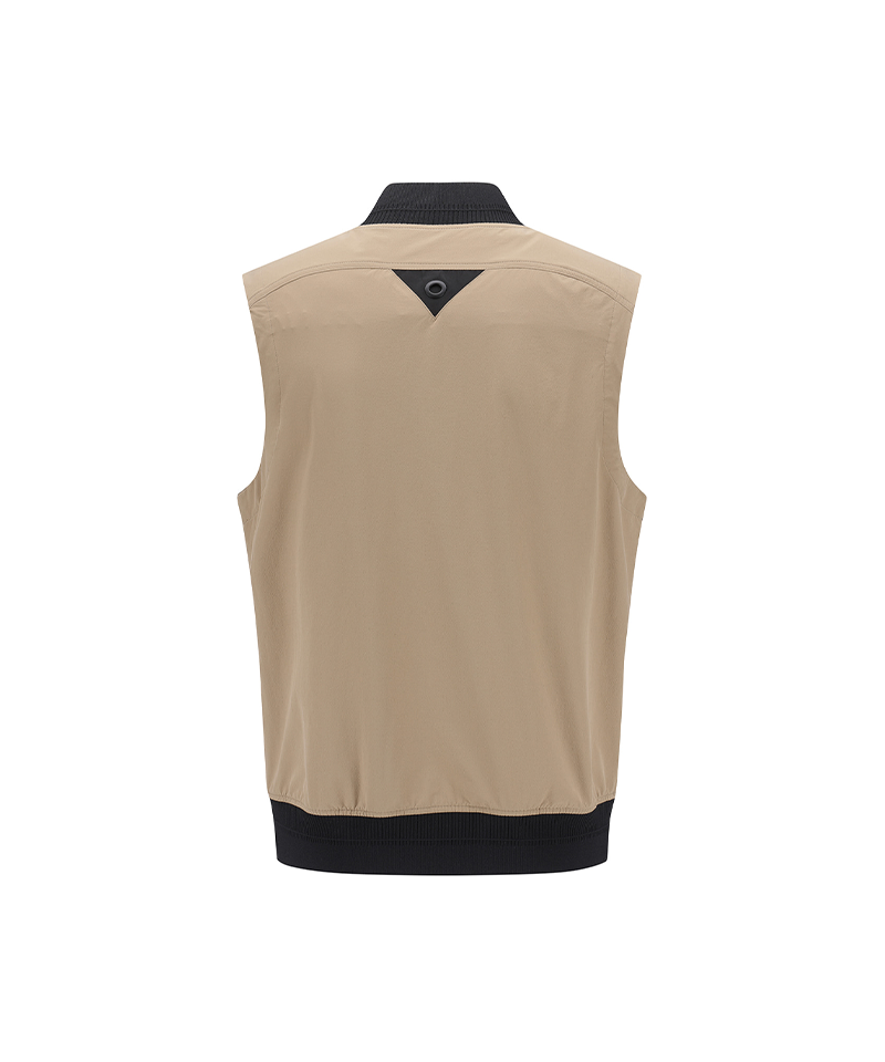 This functional vest is made from a lightweight and stretchable nylon-poly blend fabric. It features diagonal seam lines and snap pocket details for both practicality and a well-balanced design. The neck and hem are finished with ribbed trims for a stable fit. With its simple design and comfortable wear, it is highly versatile for both golf rounds and everyday use.