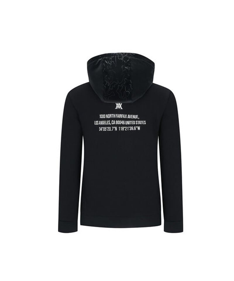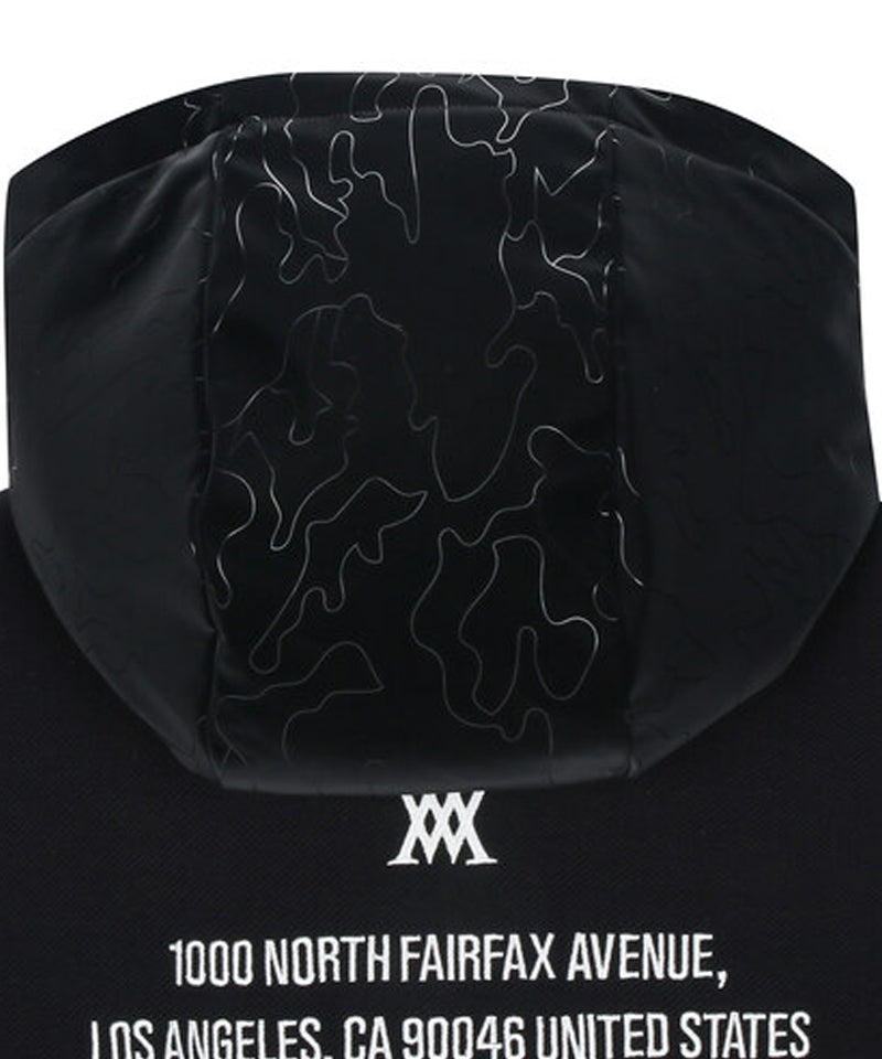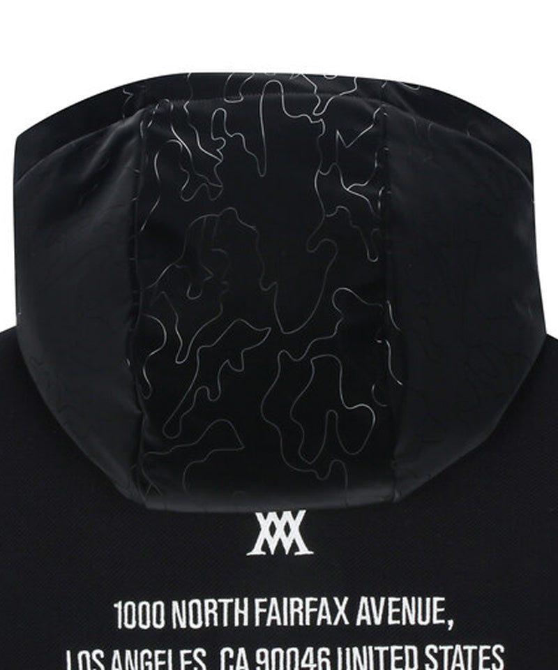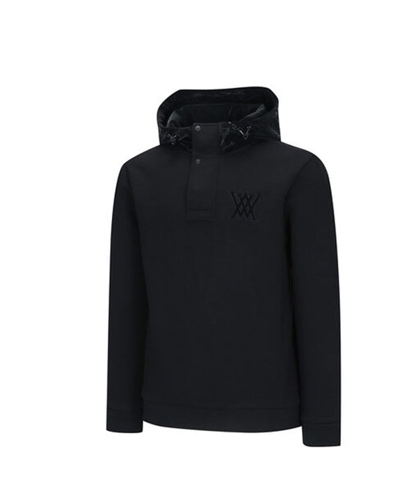 This is a winter hoodie with a mix of glossy woven materials. It is made of soft and stretchy fabric, and the embroidery on the chest and back is a focal point when worn. With a loose fit, it is an item that can be used in various ways, both on the field and in everyday life.