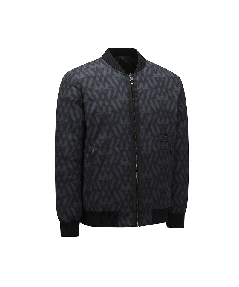 Men's WI Logo Pattern Reversible Down Jacket - Black