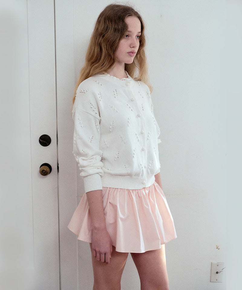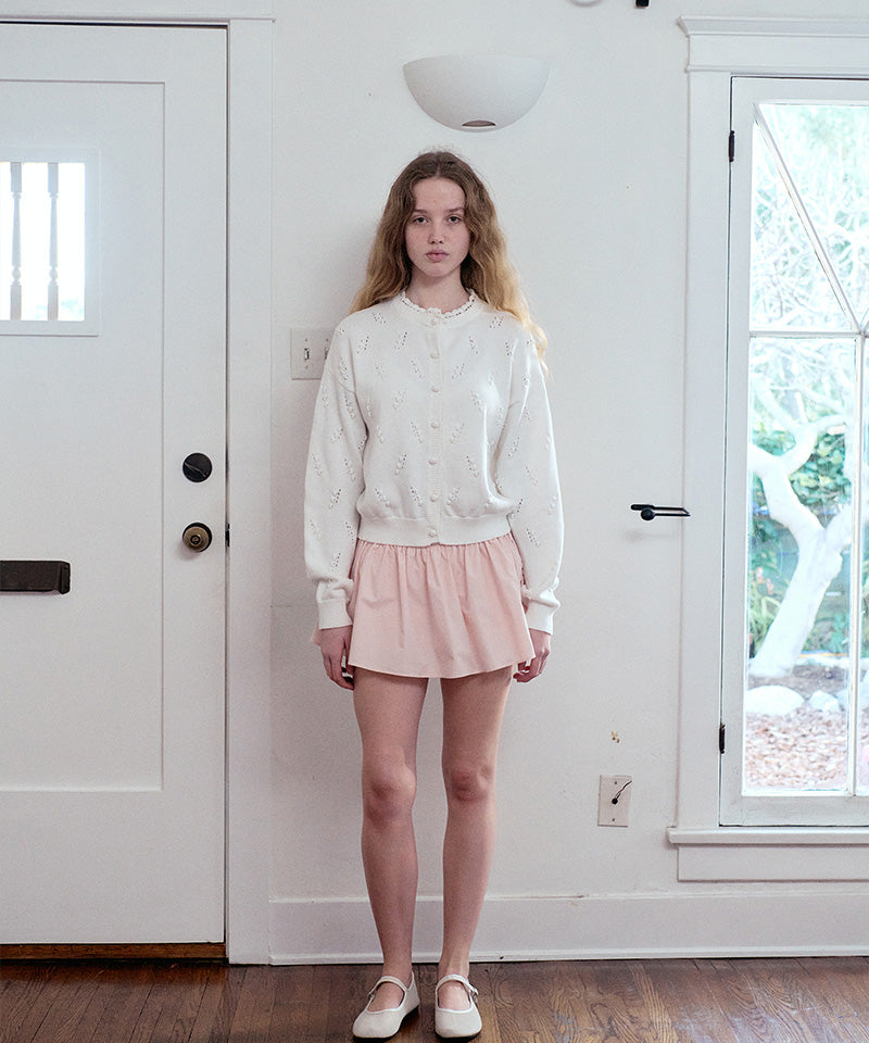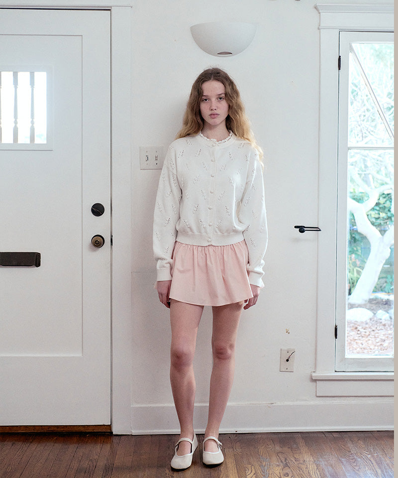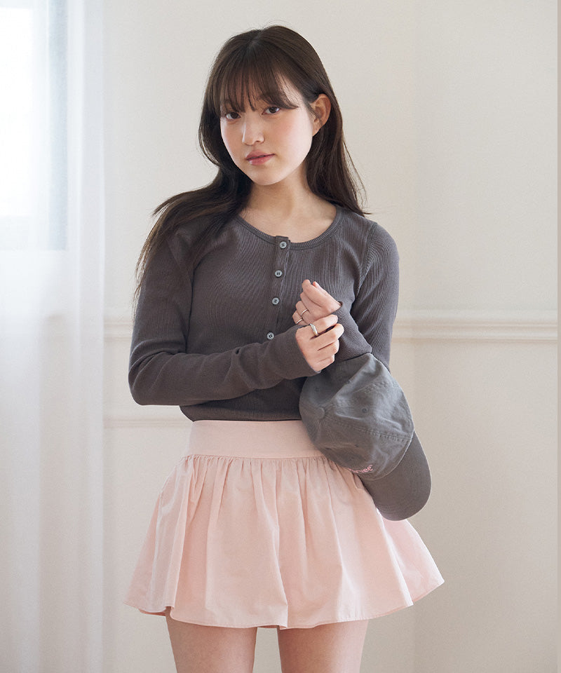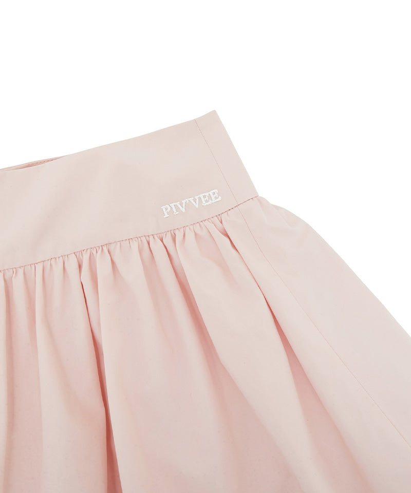 This mini shirring skirt features a voluminous A-line shape crafted from sturdy 100% cotton for a clean, structured silhouette. The Phoebe logo embroidery at the waist adds a signature touch, while built-in cotton underpants provide secure, all-day comfort.