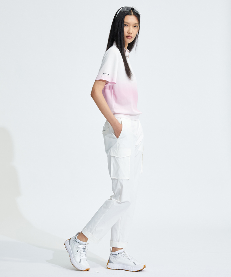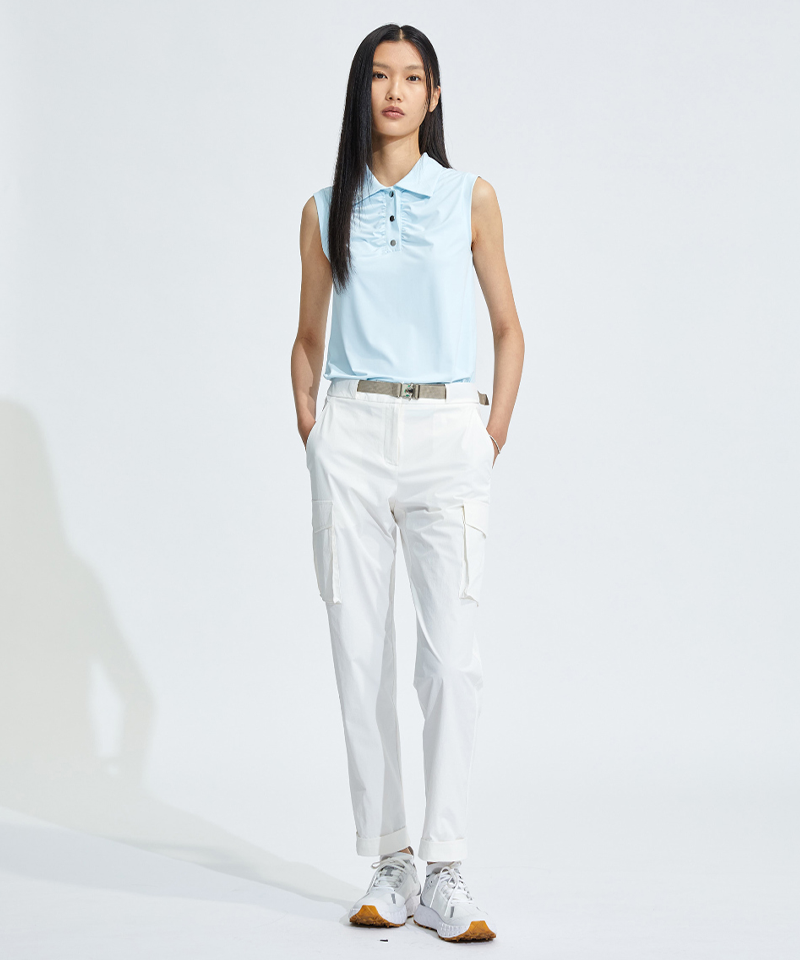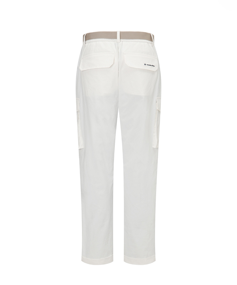 These golf pants offer a slim, straight fit that flatters all body types. Made from lightweight, stretchy nylon-spandex material, they provide comfort and a cool feel, ideal for spring through fall. The adjustable nylon belt with a steel buckle enhances fit and style, while multiple pockets add practical storage. Designed to elongate the legs, these pants combine modern luxury with functionality. Please note, bright colors may bleed, so skin-colored underwear is recommended.