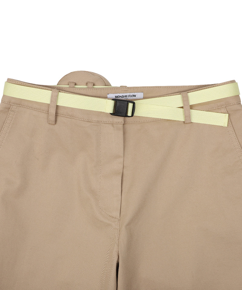 Monday Flow Cotton Comfort Pants(Belt) - Beige