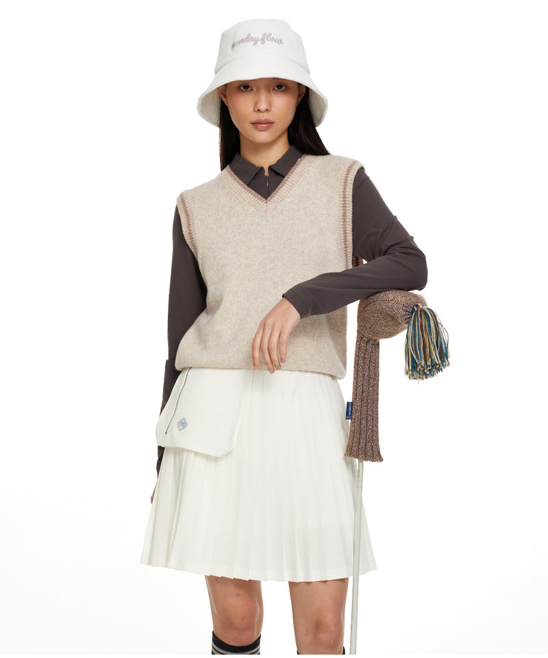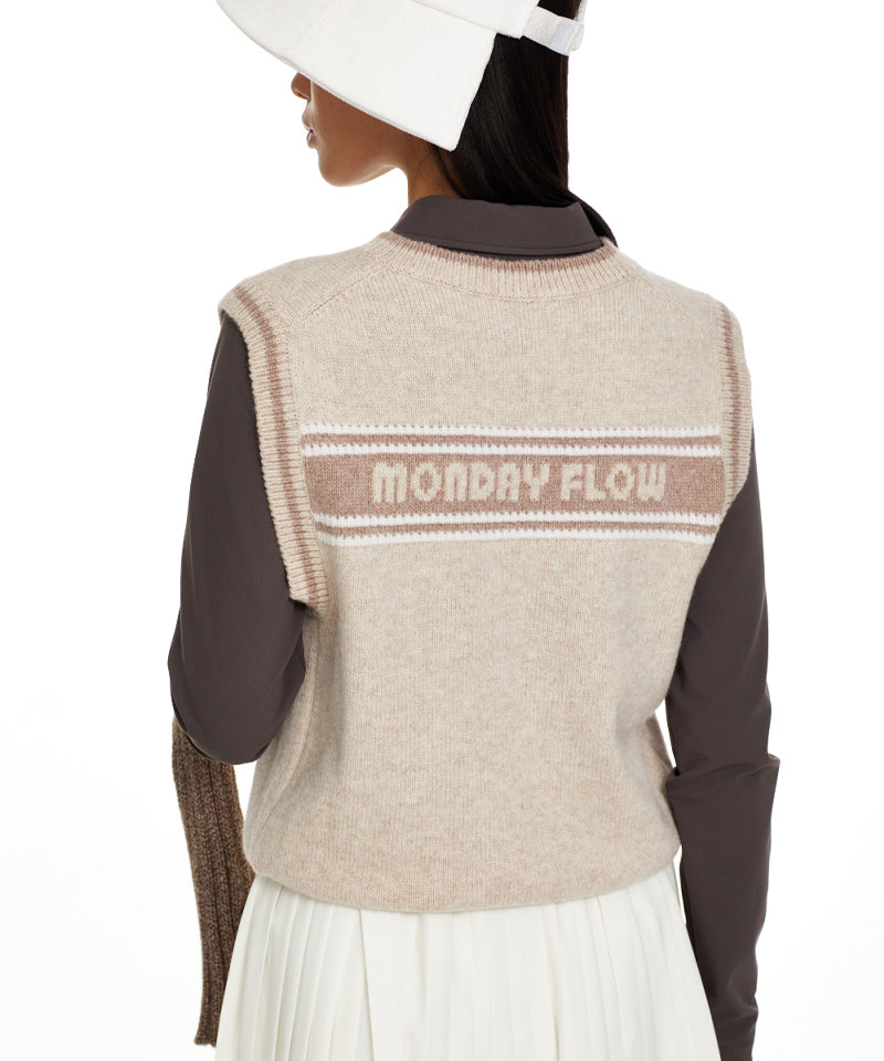 Monday Flow Logo Warm Knit Vest - Beige