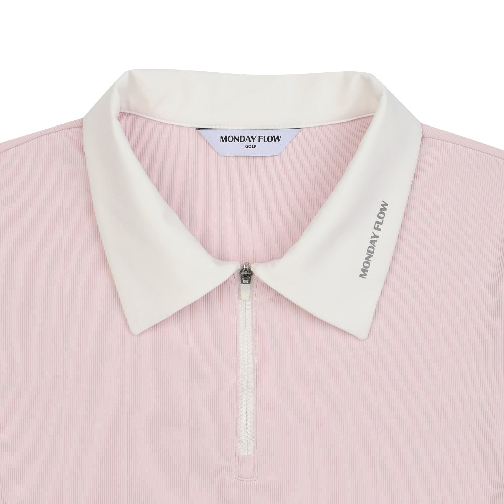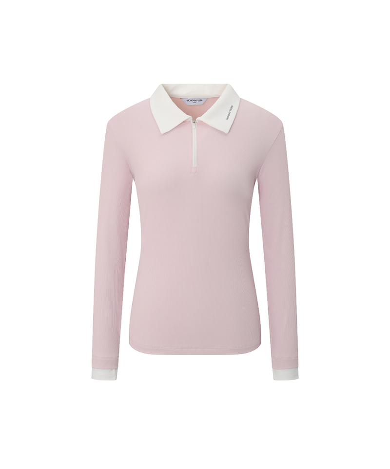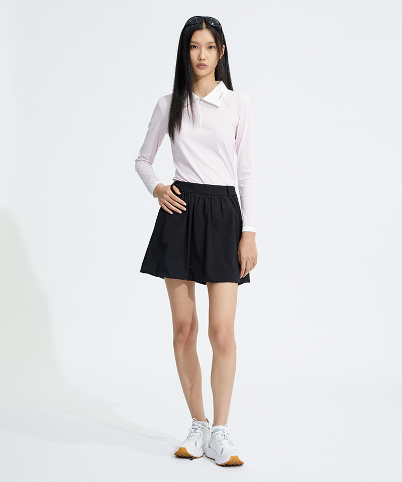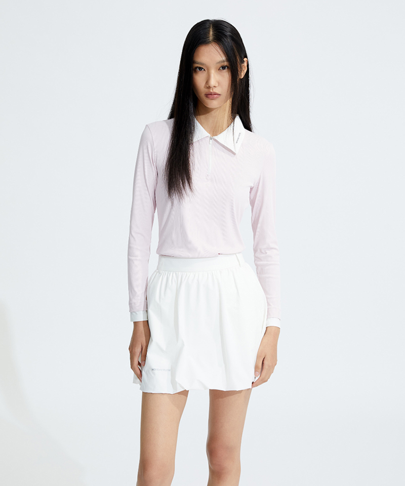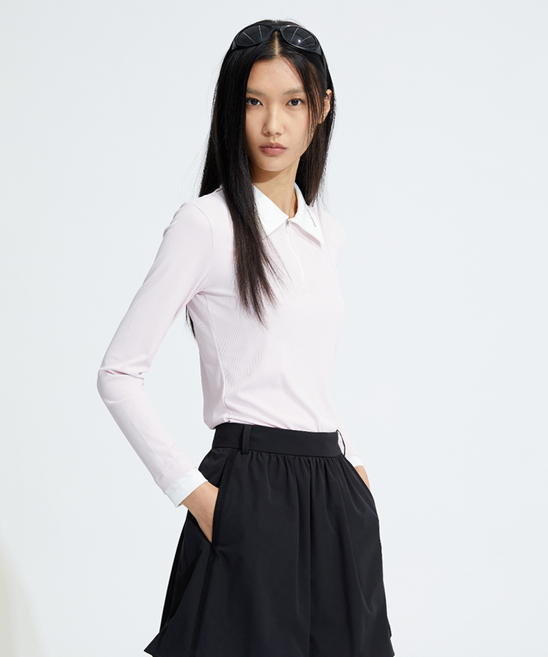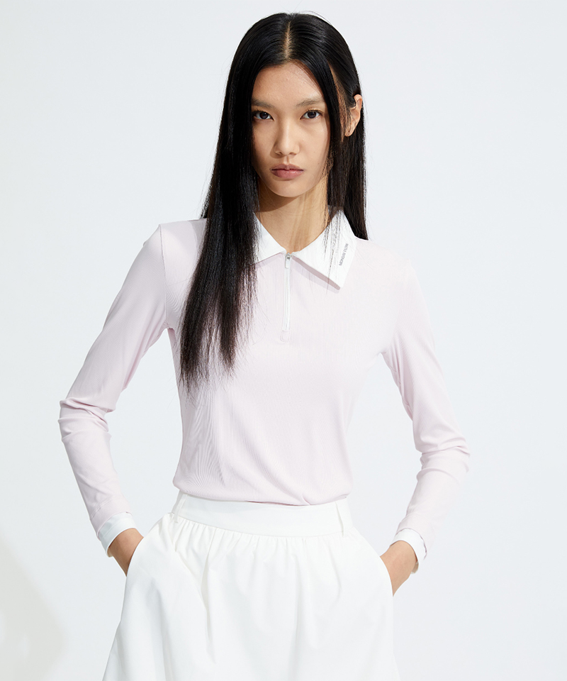 This functional long-sleeved golf top is designed with added details that make it stand out on and off the course. The subtle color matching on the collar and sleeves adds a refined, stylish touch, while the neat shirt collar gives a classic yet feminine feel. With a zipper closure, it’s easy to put on and take off, making it both practical and polished for active days.
