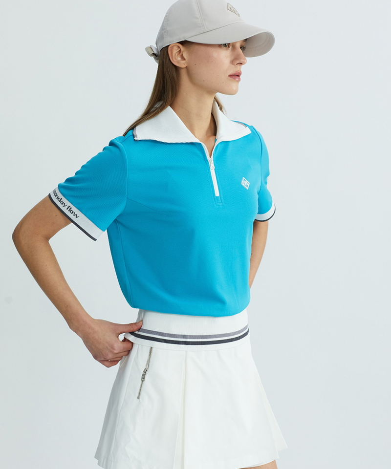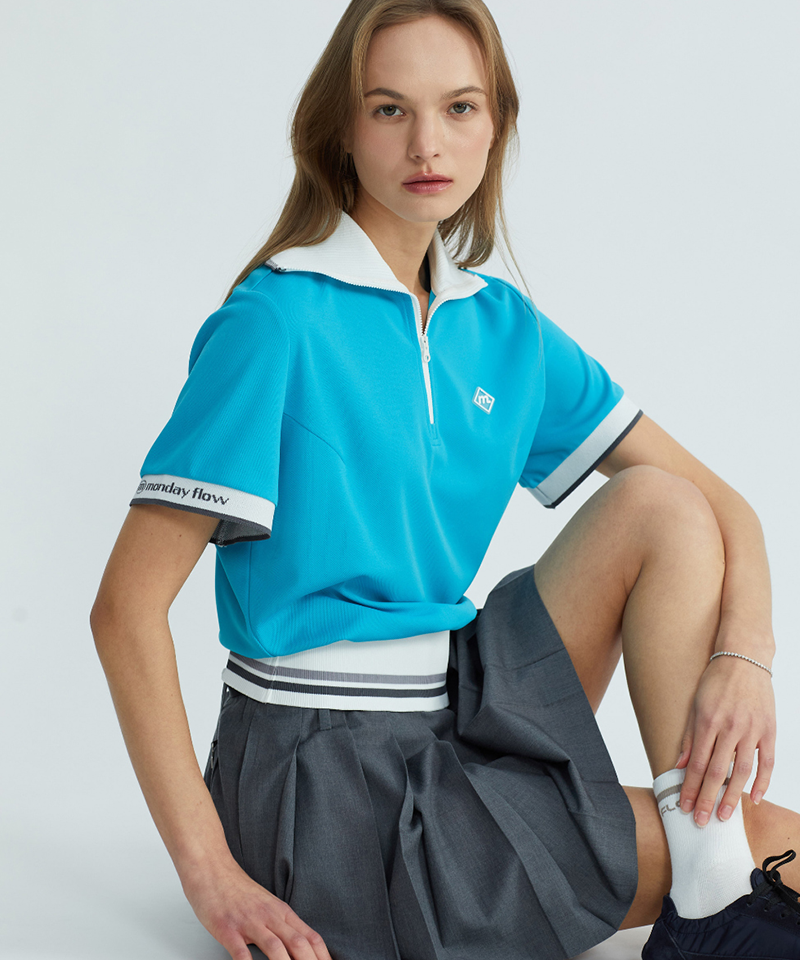 Monday Flow Women's Wide Collar Zip-Up Top - Teal