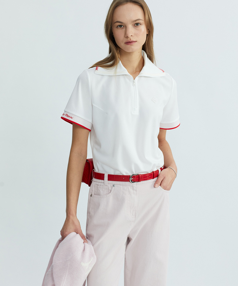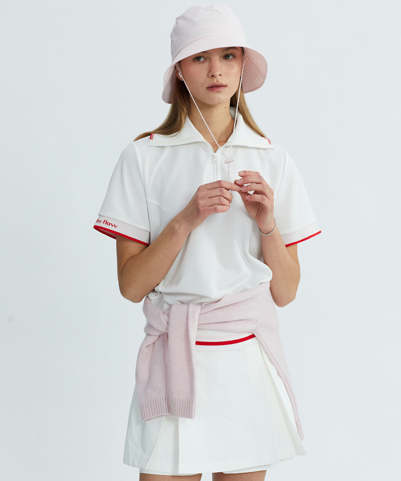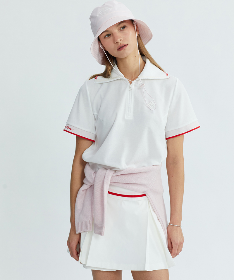Monday Flow Women's Wide Collar Zip-Up Top - White