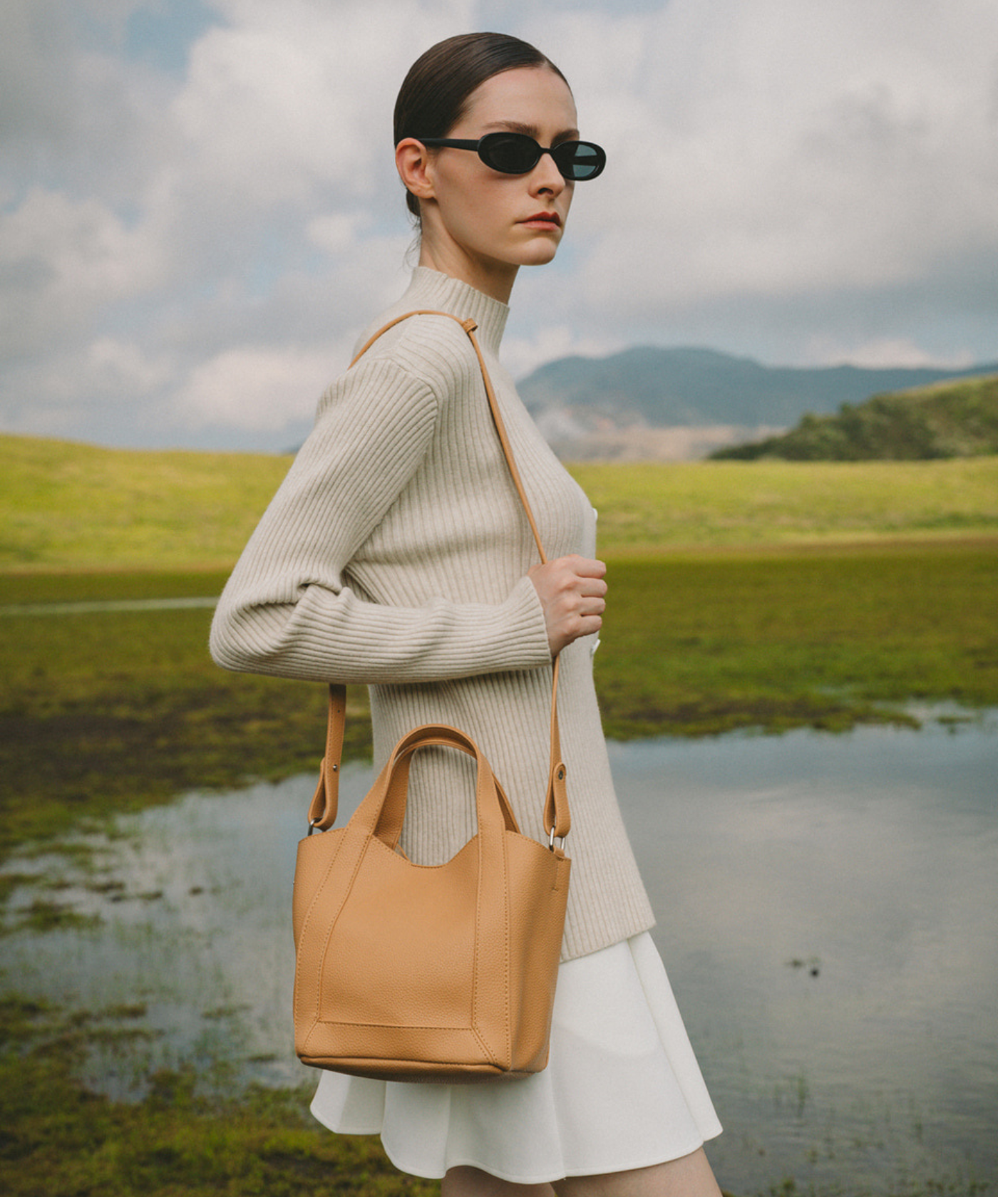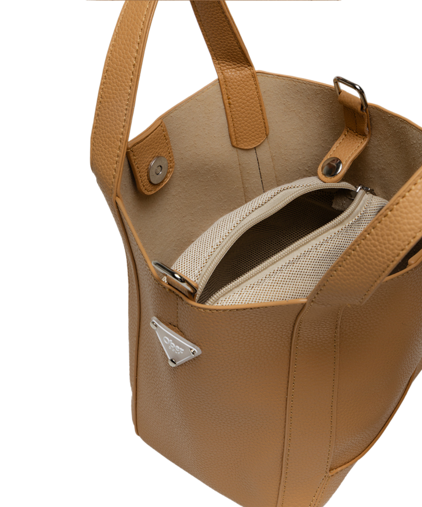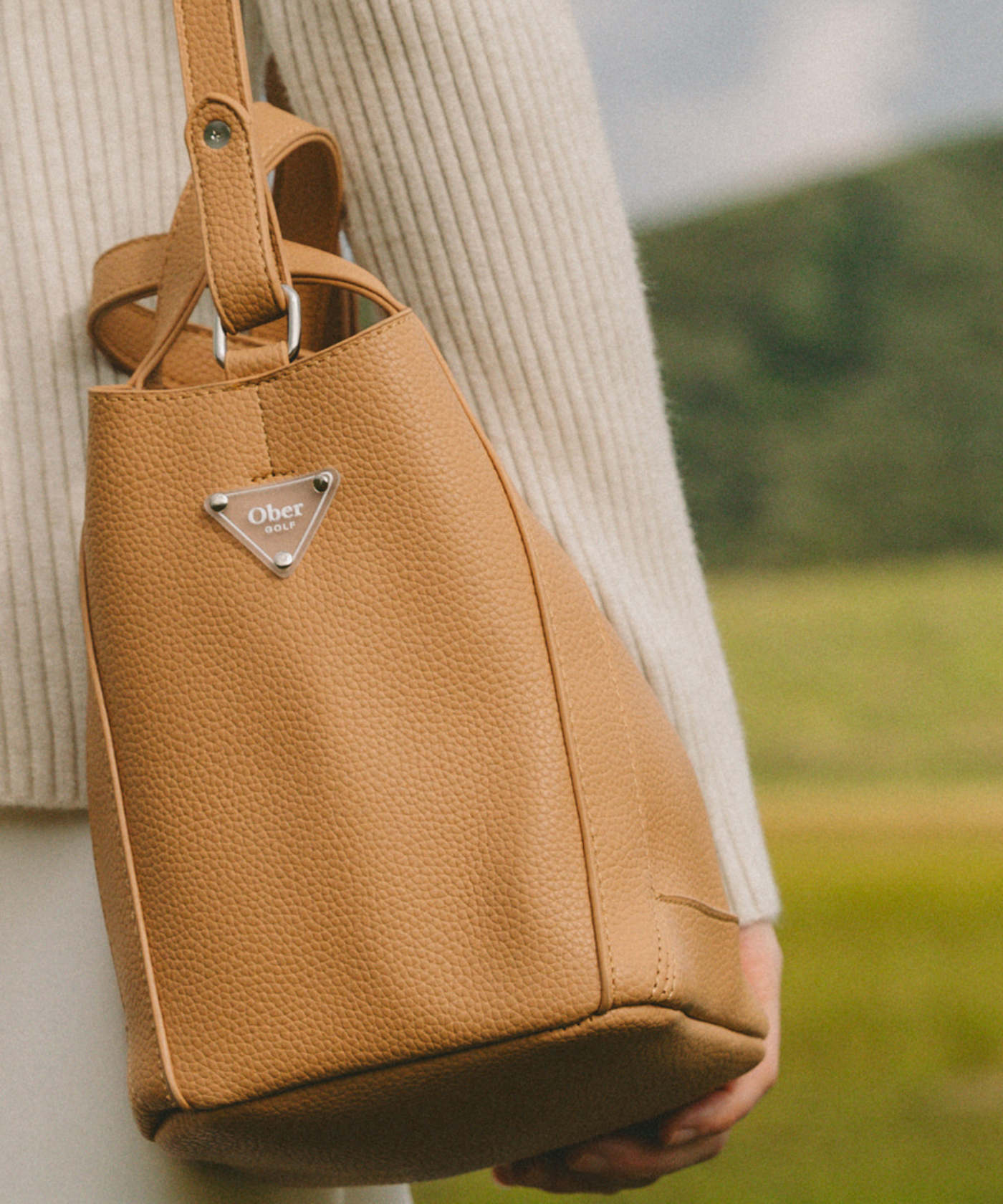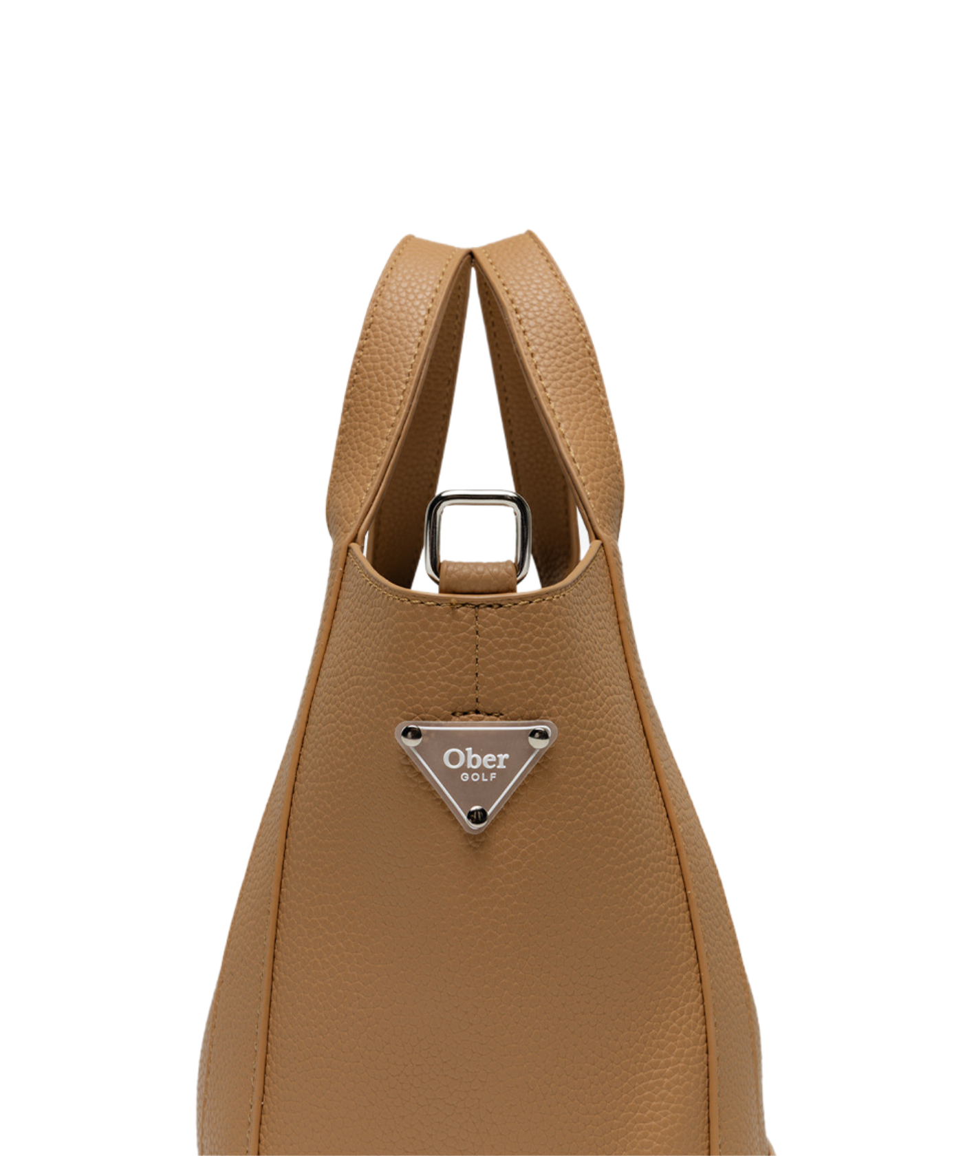 This elegant tote features a refined grain texture and a sleek, minimalist design. It offers versatile wear with both a long crossbody strap and a tote handle. An inner pouch set enhances functionality and organization, while the OBER triangle logo adds a subtle brand signature. Compact yet spacious, it suits everyday and more dynamic outings alike, providing stylish adaptability for various occasions.