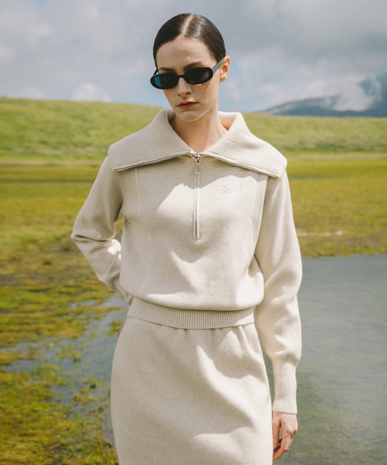 This set includes a PK fabric sweatshirt with a zippered neckline and a skirt with side pockets and an elastic waistband. Designed for comfort and style, it features a relaxed fit that flatters your silhouette while adding a touch of sporty elegance.