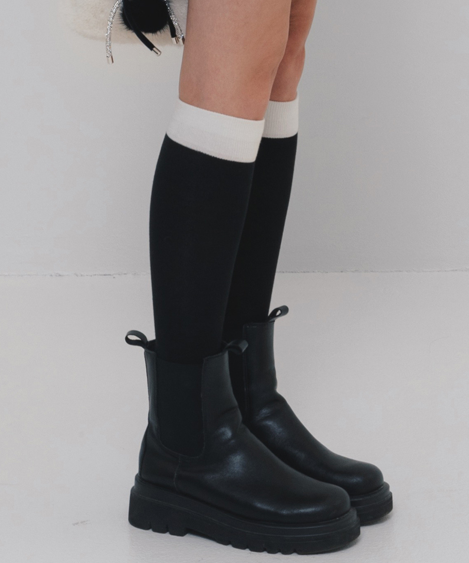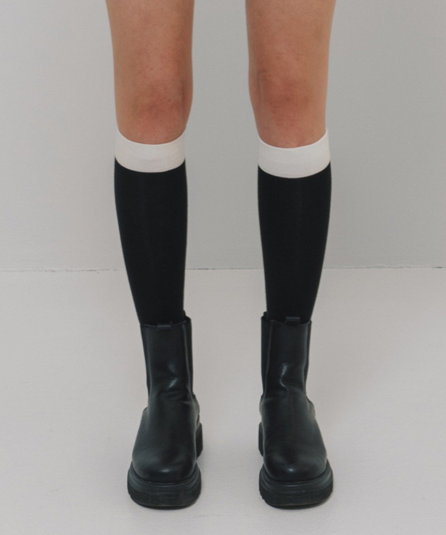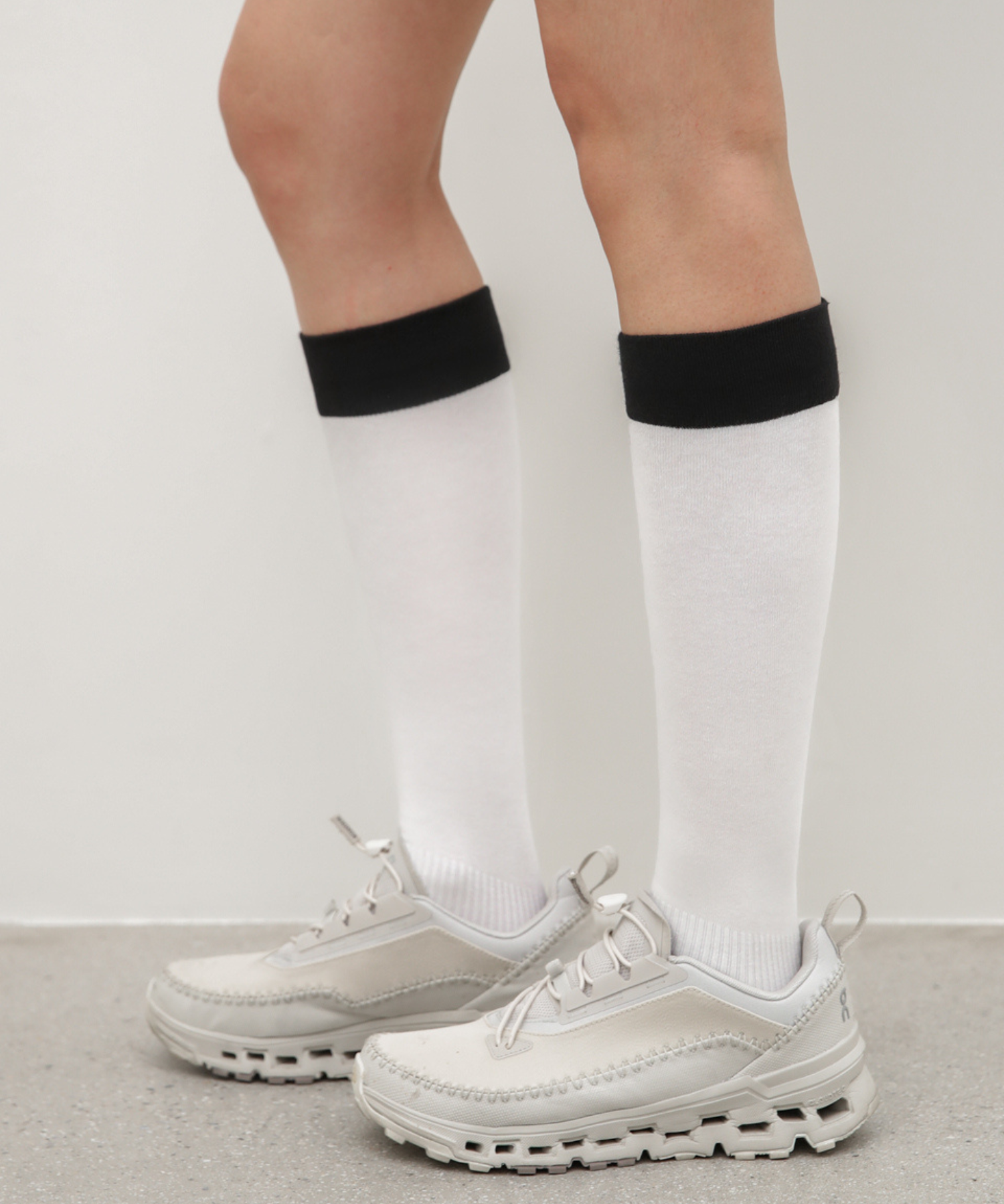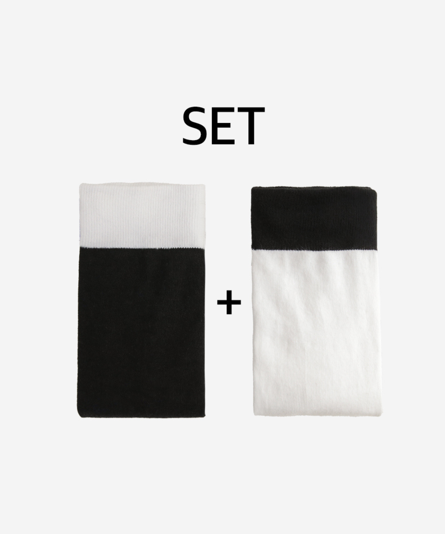 Basic knee socks with a simple color scheme that are easy to wear. The texture of the bottom surface provides moisture absorption and quick drying as well as a soft feel when worn. A special product consisting of a set of black and white