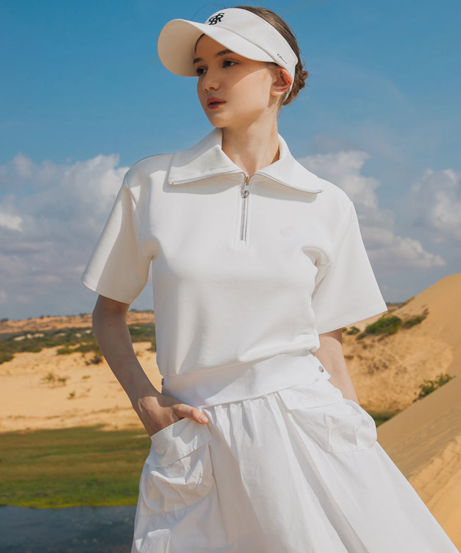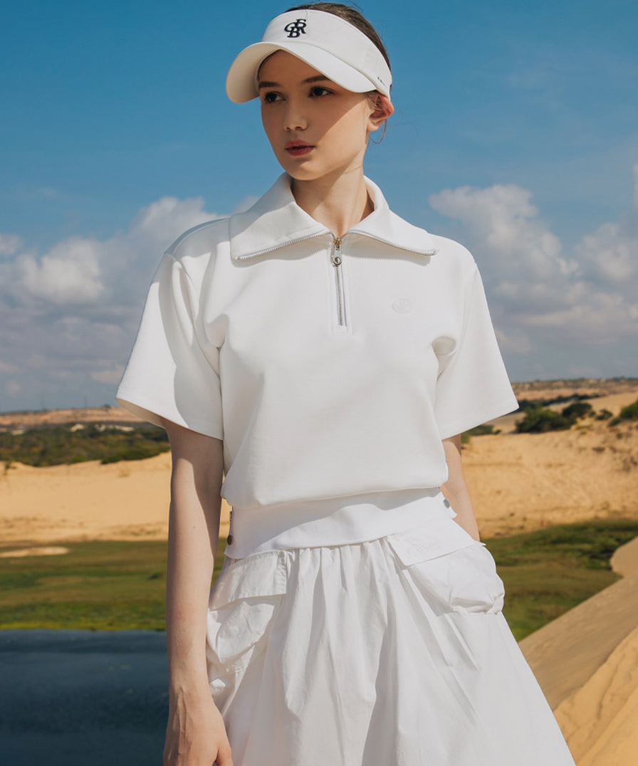 OBER Golf Basic Half Zip-Up Short Sleeve T-Shirt - White