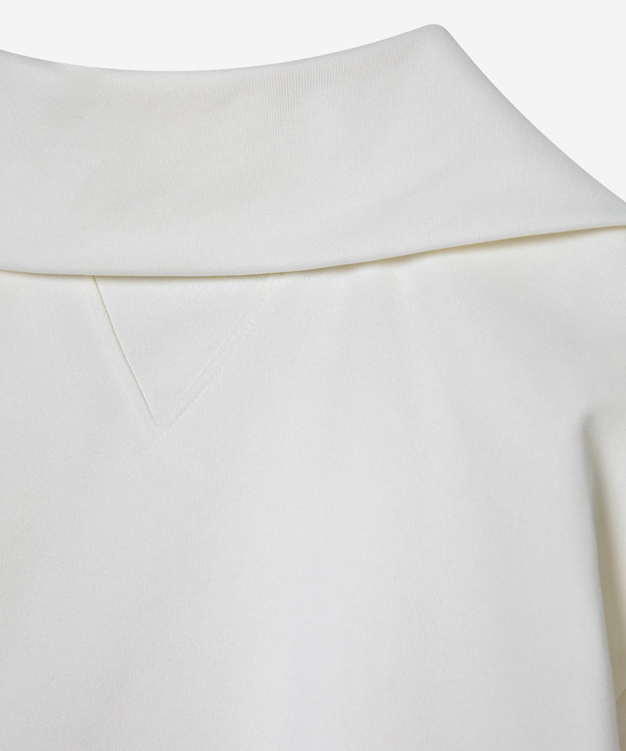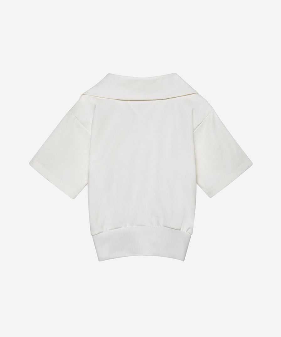 Functional short-sleeved half-zip-up t-shirt made of sturdy material comfortable fit with slightly dropped shoulder line and roomy arms. Half zip-up design allows collar height adjustment fit can be adjusted with luxurious-looking knit hem and side snaps a logo point on the front.
