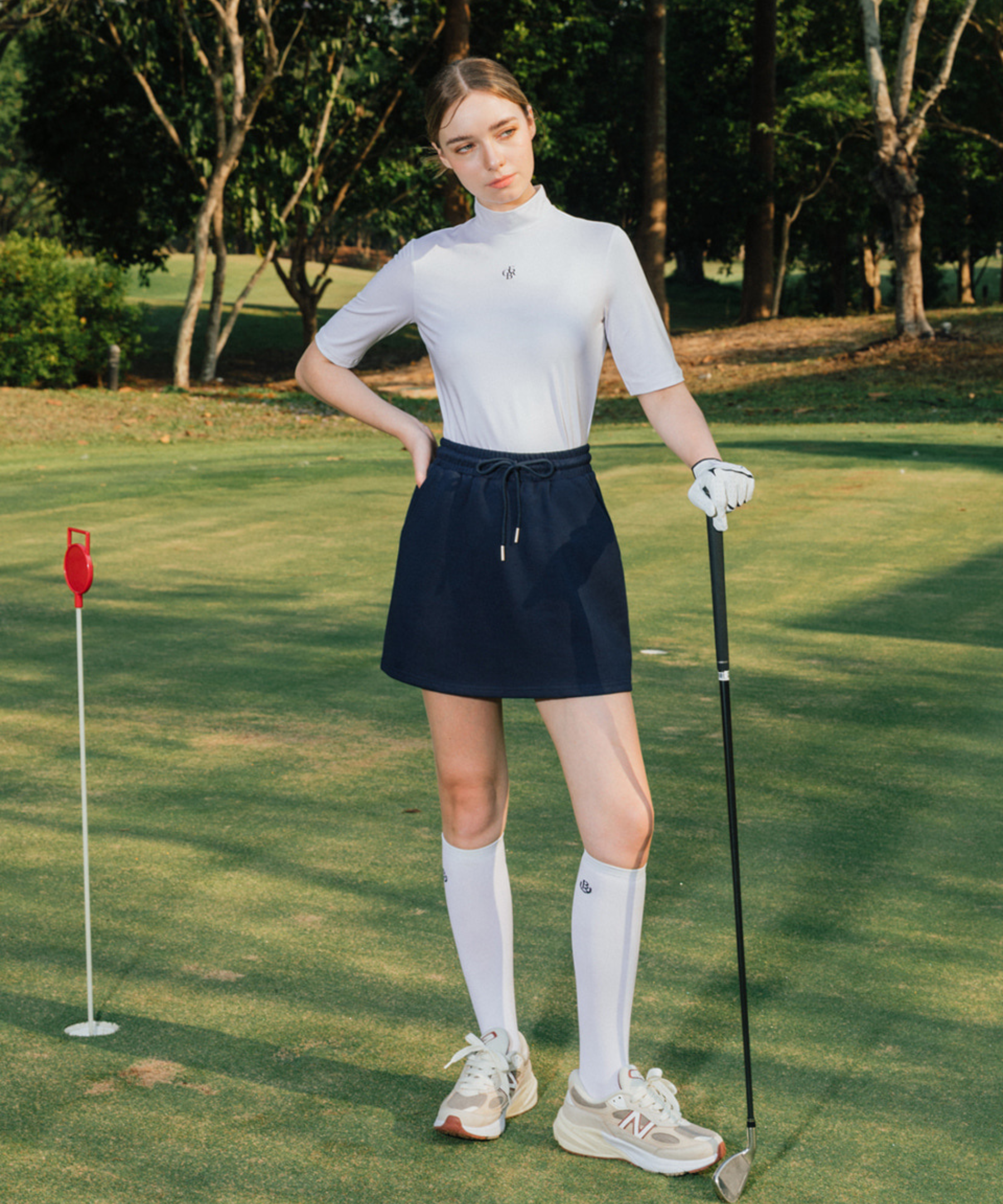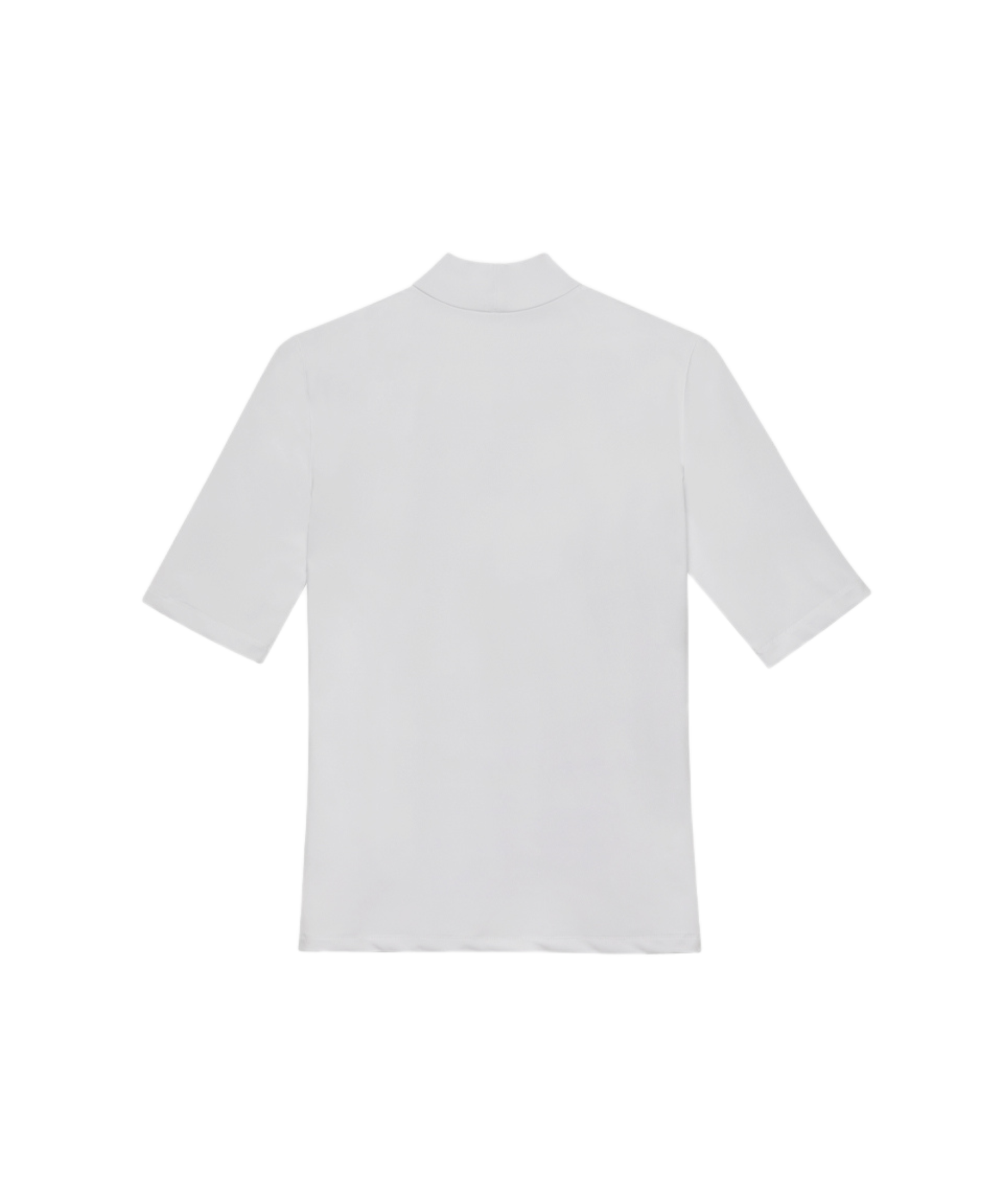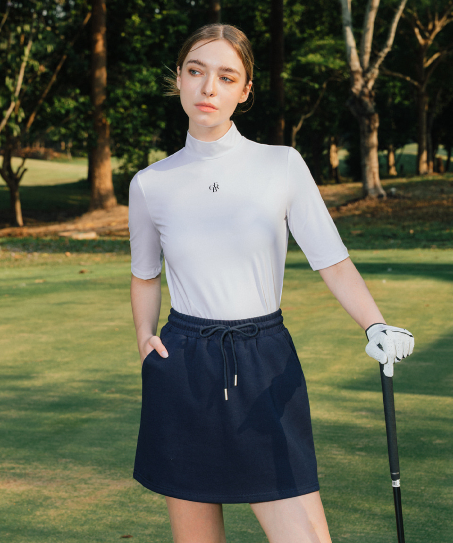 Crafted from a high-performance fabric with excellent stretch, this T-shirt features Obergolf's sleek slim fit for a refined look. Its half-neck style offers versatile wearability, either solo or layered. Highlighted by a subtle Ober logo on the front, the tightly woven, modestly thick material ensures minimal transparency, making it both elegant and comfortable when worn alone. Ideal as a base layer beneath outerwear, knit vests, or cardigans, it supports ease and style during outdoor pursuits.