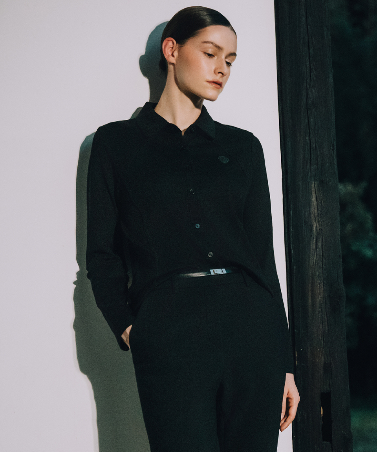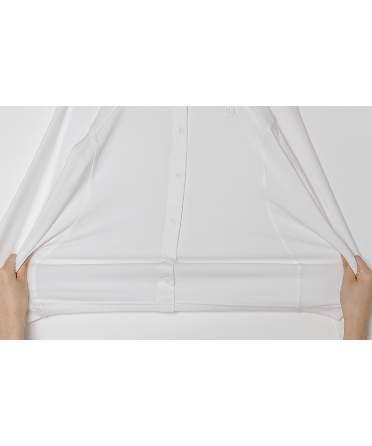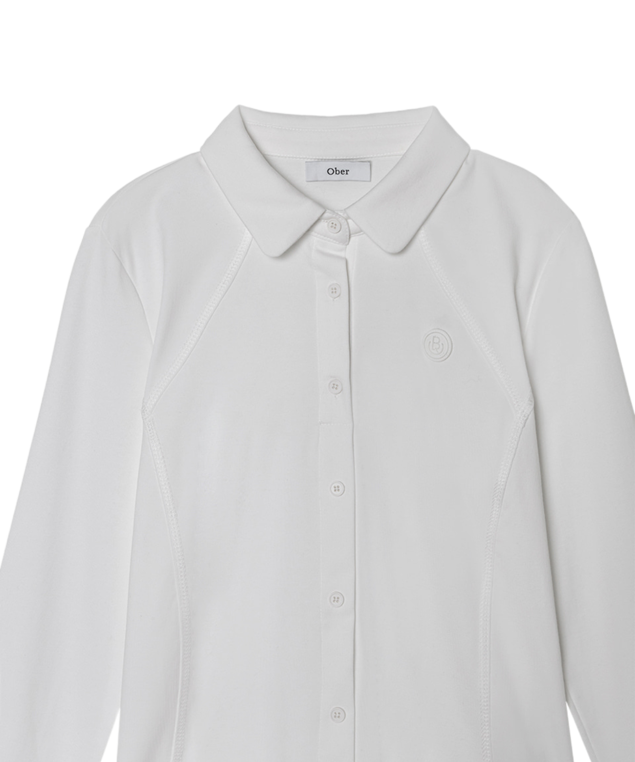 Crafted from a soft and flexible cotton blend, this shirt offers exceptional comfort. Its subtle design features a minimalist collar and elegant diagonal cut details. While the overall fit is relaxed for ease of movement, a gently gathered waist subtly enhances your silhouette. The chest bears the distinctive Ober logo embroidery, underscoring its refined quality. This essential piece stands out on its own with a clean look and serves perfectly as a layering option beneath jackets or sweaters. Versatile and polished, it pairs effortlessly with skirts or trousers, seamlessly bridging casual and active styles.