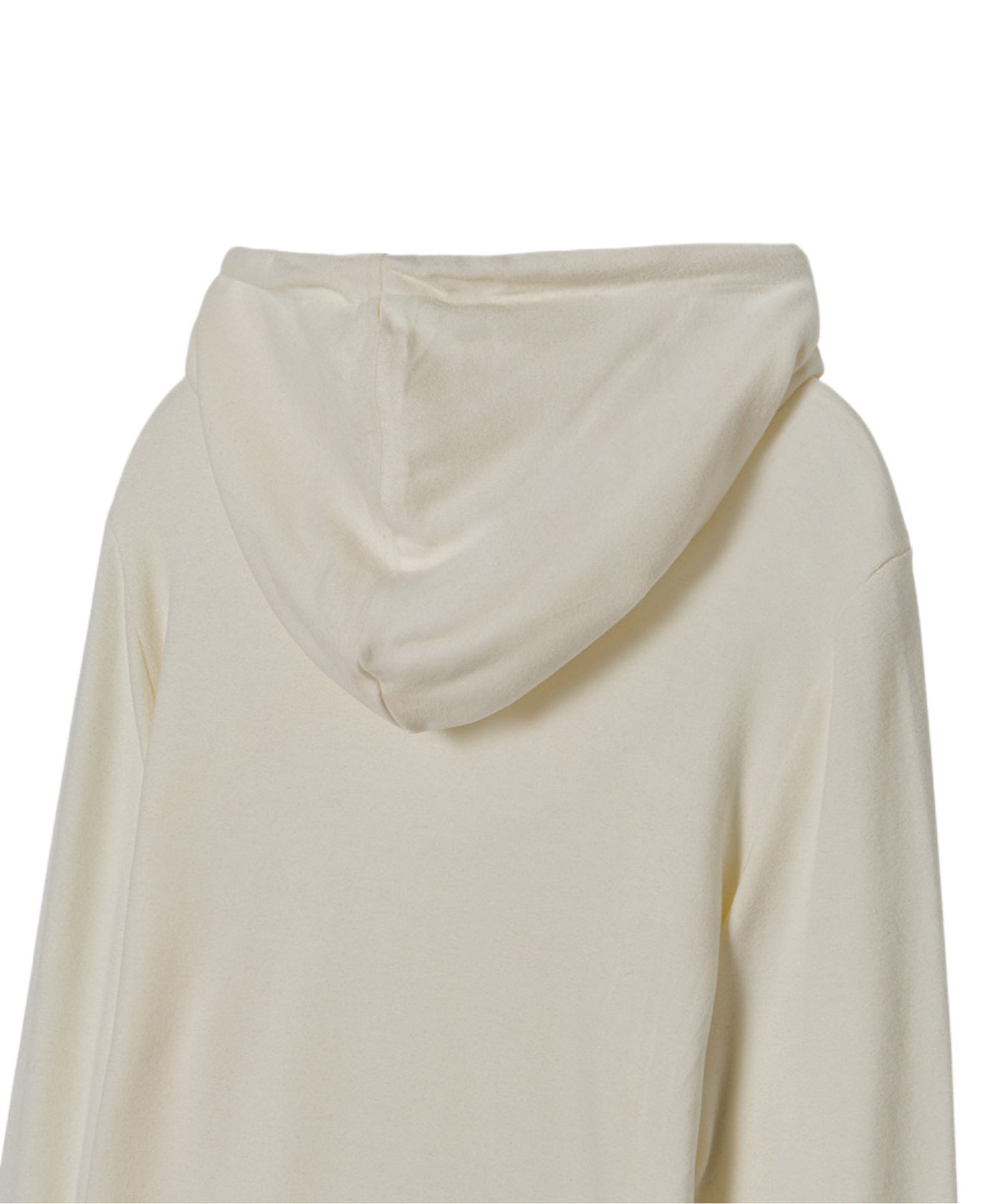 Hand wash this ivory hooded top separately using a mild detergent in water below 30°C. Avoid soaking longer than 10 minutes and rinse thoroughly to remove moisture and sweat. Wash white and colored items separately. After washing, gently spin dry briefly and lay flat to dry in the shade. Do not wring, machine dry, or iron to maintain fabric quality. Natural pilling may occur.