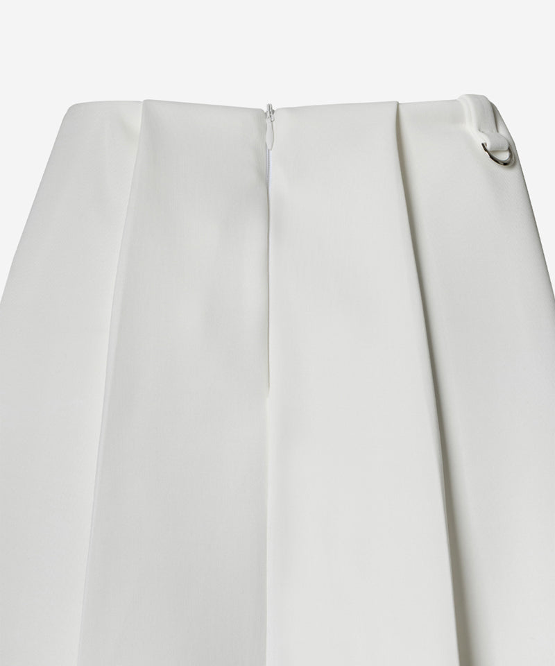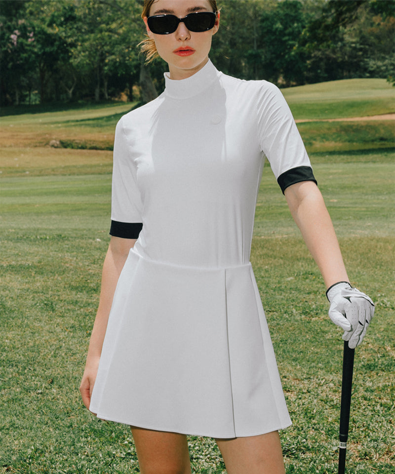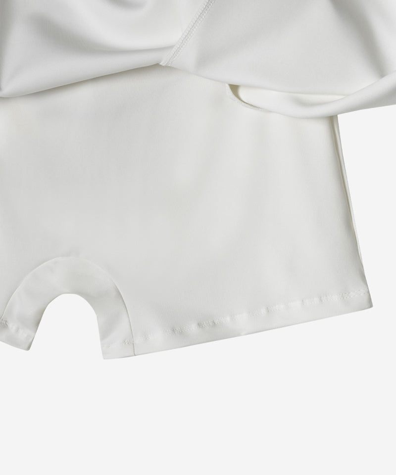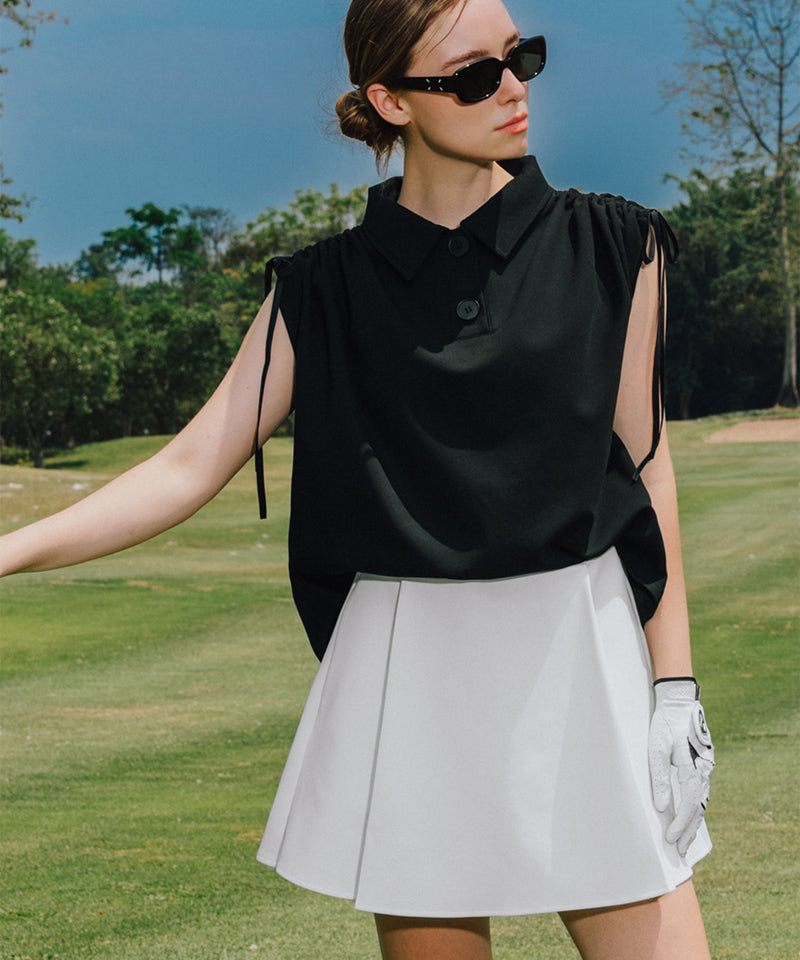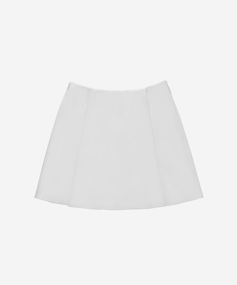 This skirt is crafted from high-elasticity functional material, ensuring free and comfortable movement throughout the day. The elegant A-line silhouette is enhanced by a unique chin design that differs between the front and back, adding a refined touch. Hidden waist banding provides a secure yet comfortable fit, while side pockets offer convenient storage. Built-in inner pants make it easy to wear with confidence. With its simple yet sophisticated design and classic color, this skirt is perfect for both golf and everyday styling.