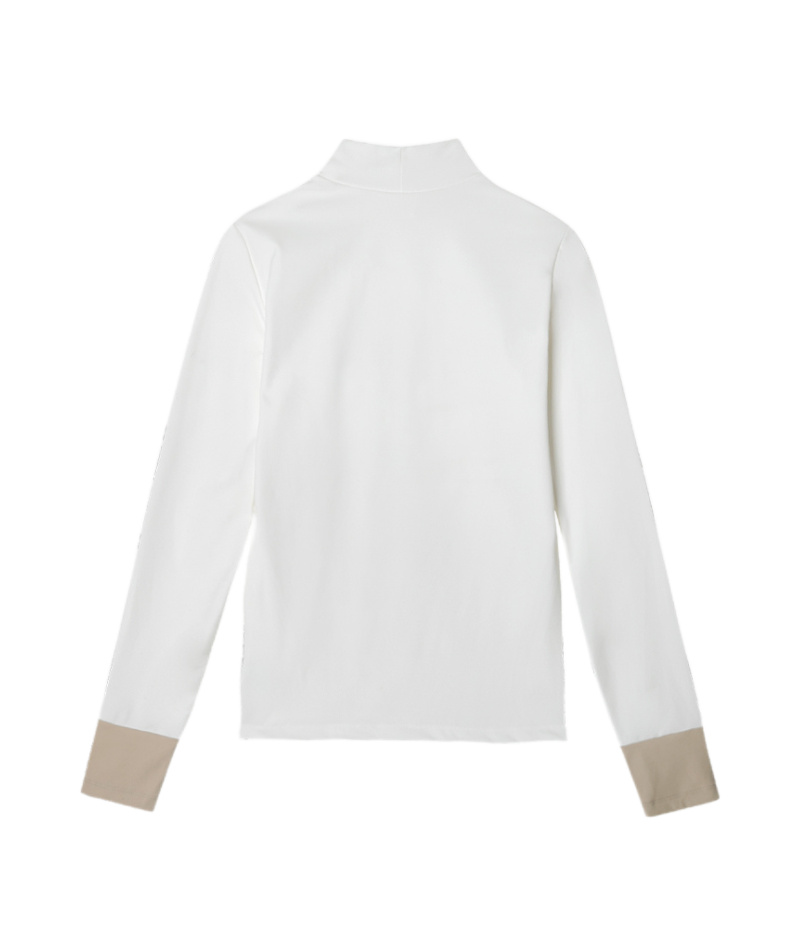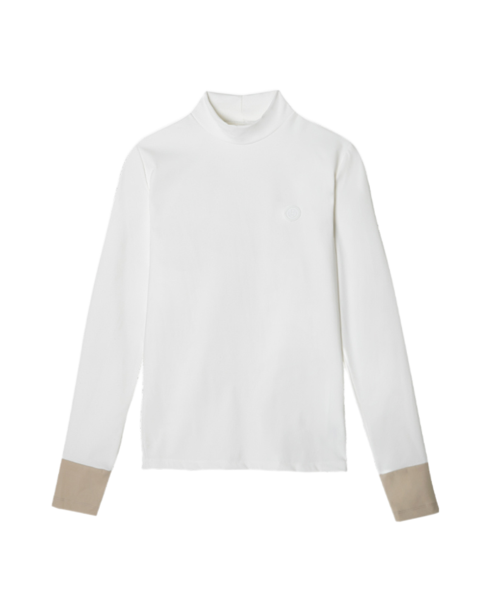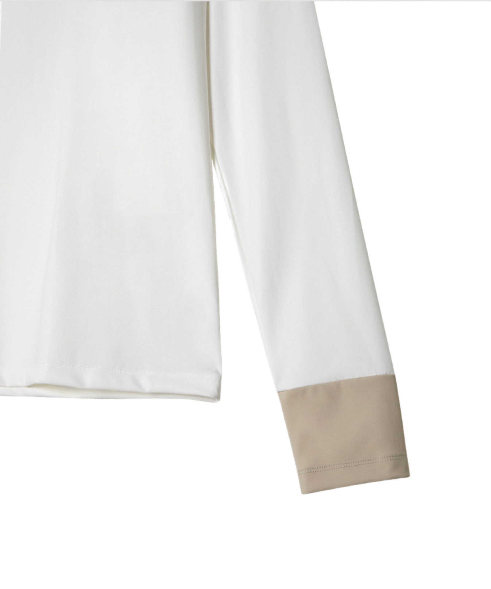 This slim-fit T-shirt features stretchy, functional fabric for unrestricted movement. Its solid color is accented by contrasting sleeves and a half-neck design for easy layering. A subtle Ober Golf patch adds a refined touch. The dense, minimally sheer material ensures a polished look whether worn alone or under outerwear, combining comfort with understated elegance.