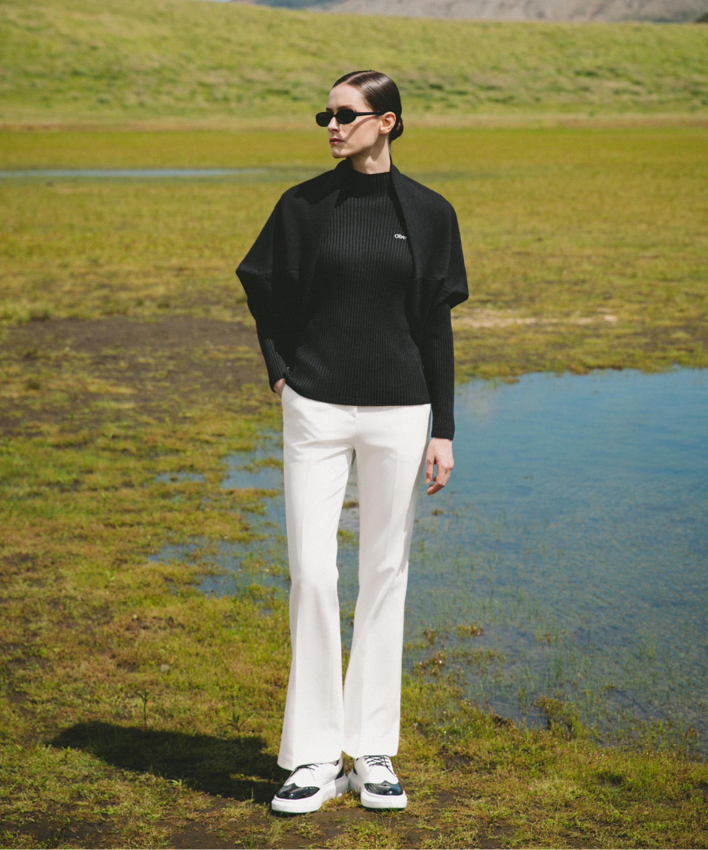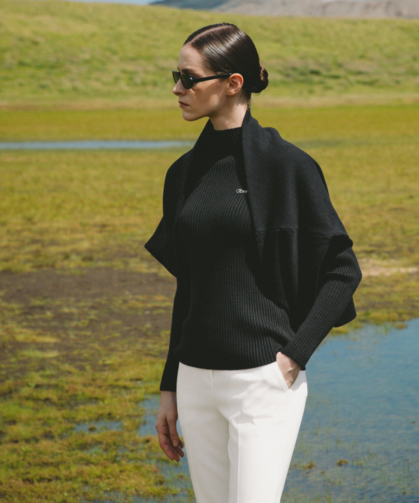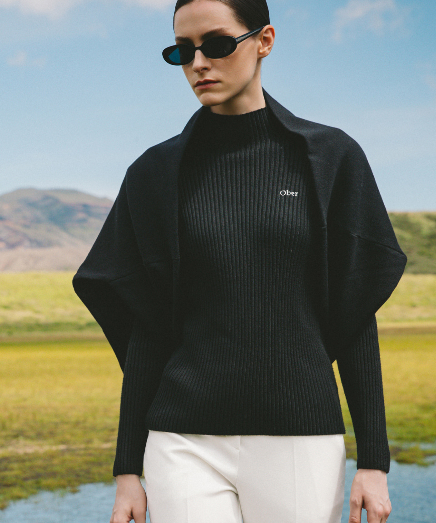 OBER Golf Knit Cape Shawl Black