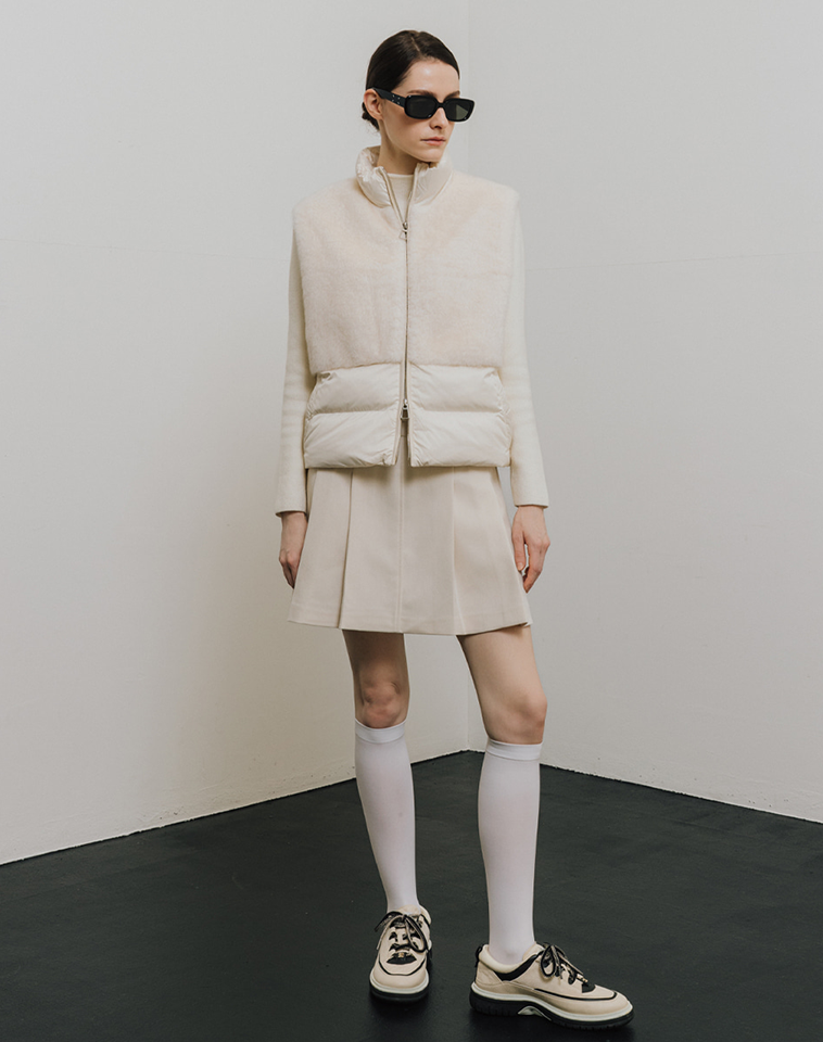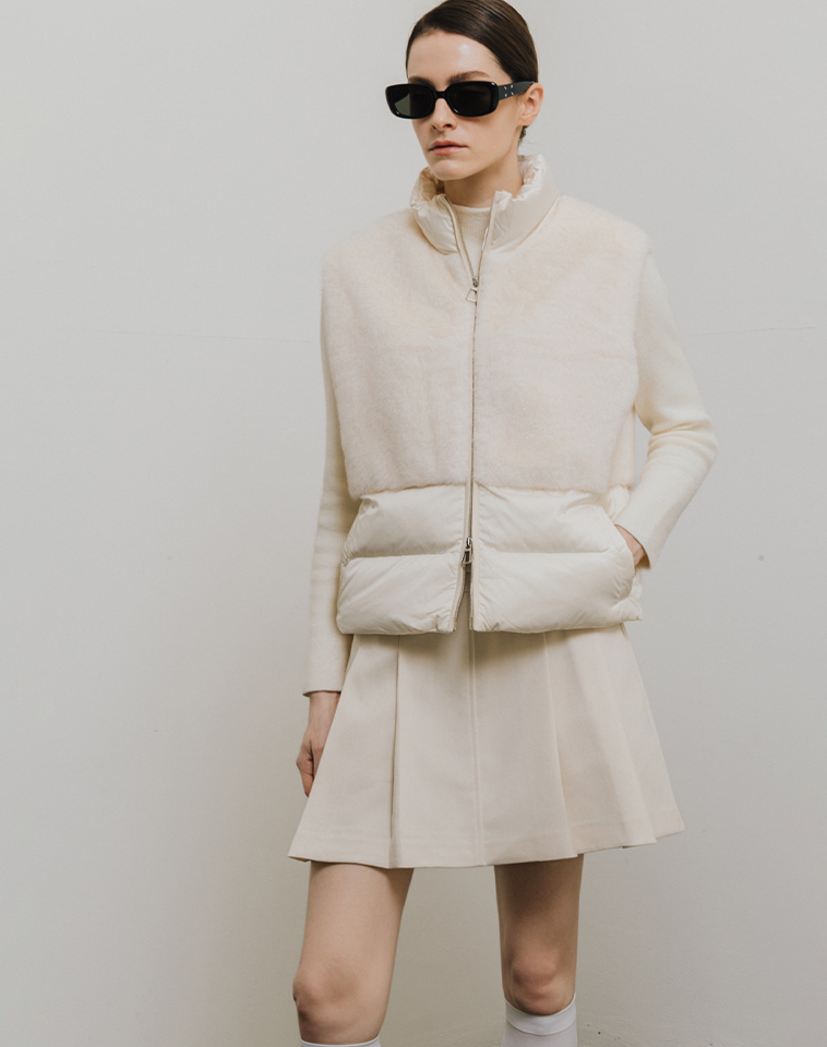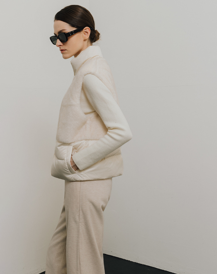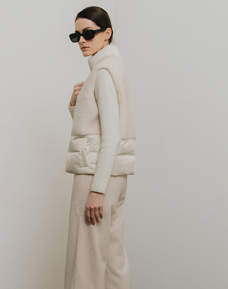 OBER Golf LUX Padded Combination Fur Vest - Ivory