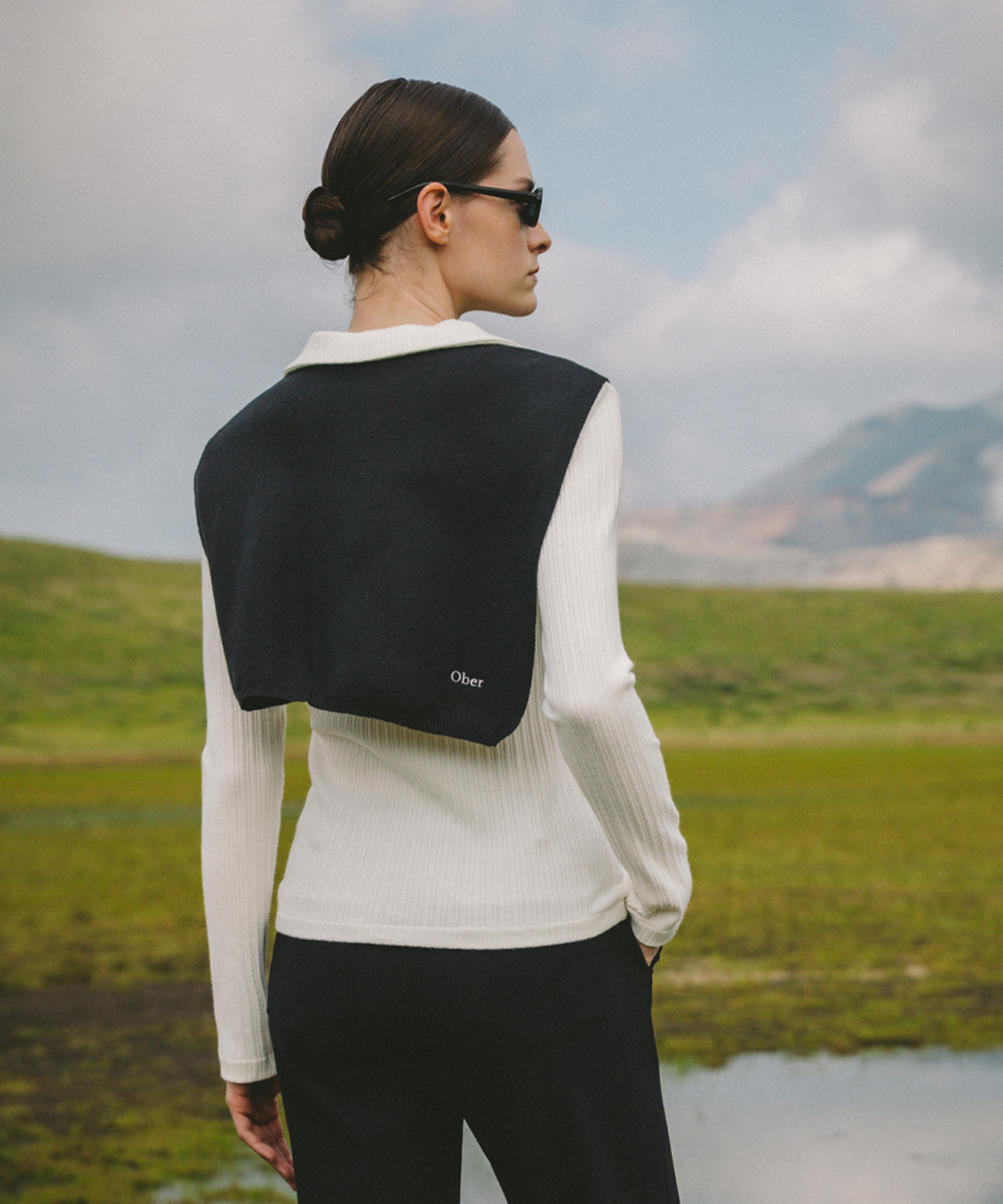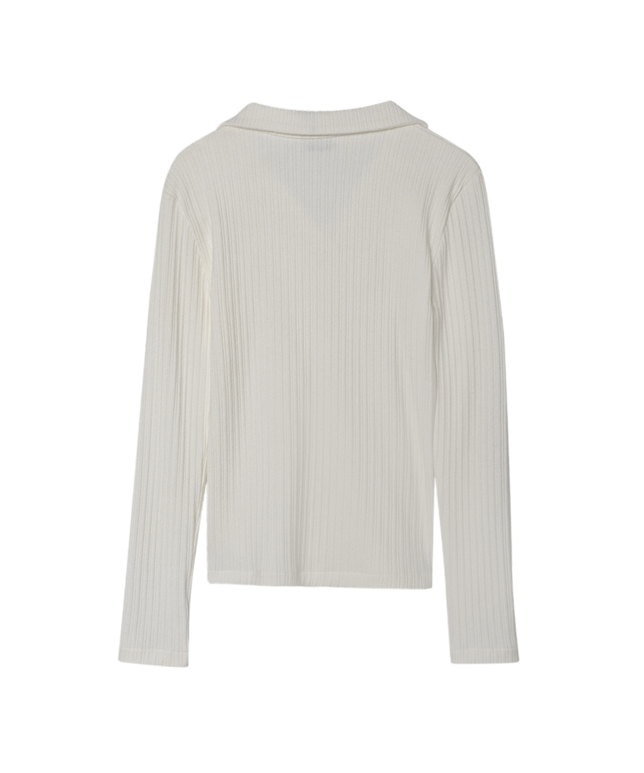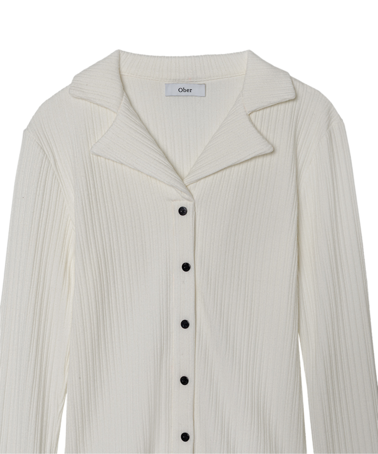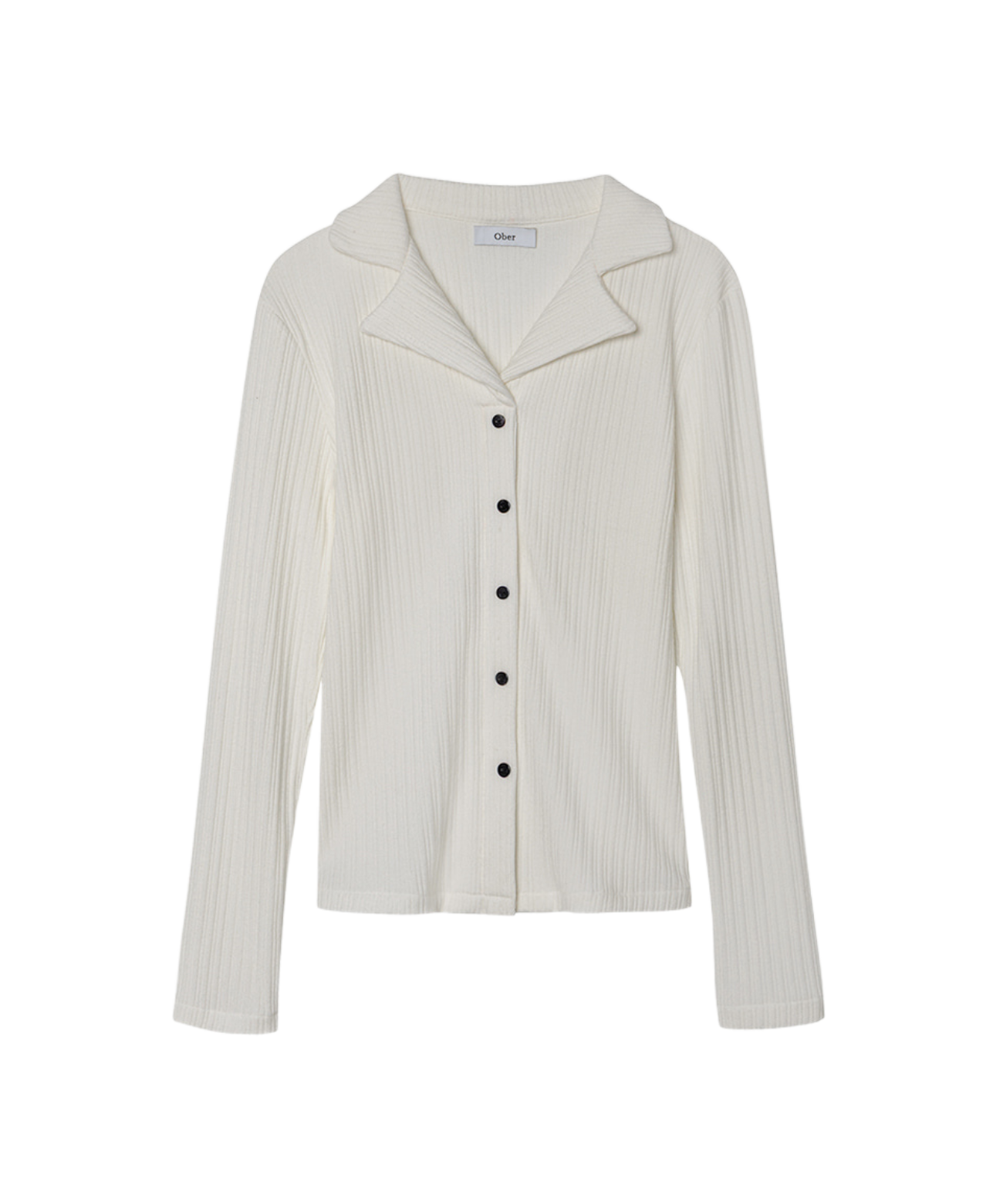 This ivory shirt features a sleek, long silhouette with vertical ribbing and refined collar details. Fixed front buttons ensure a secure fit, while performance elements support stability during swings. Subtle OBER branding on the engraved buttons adds elegance. Versatile and polished, it pairs well with knit vests, cardigans, and sweatshirts for both the golf course and everyday wear.