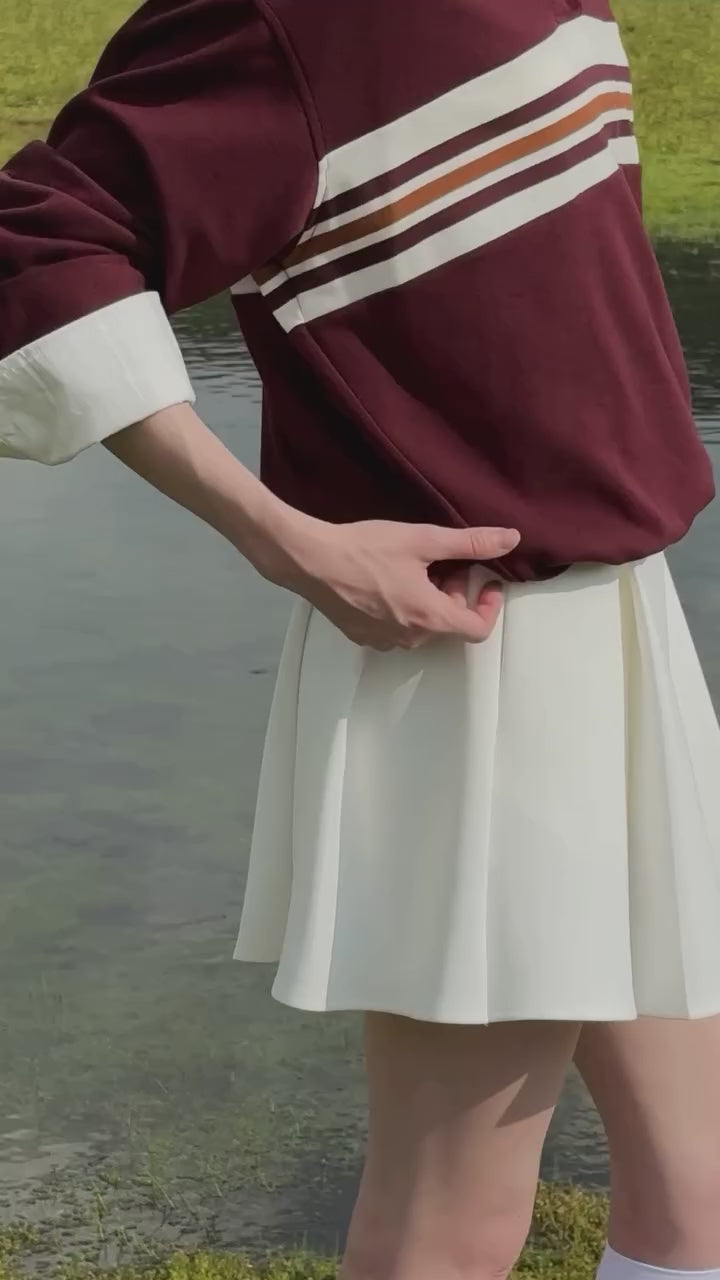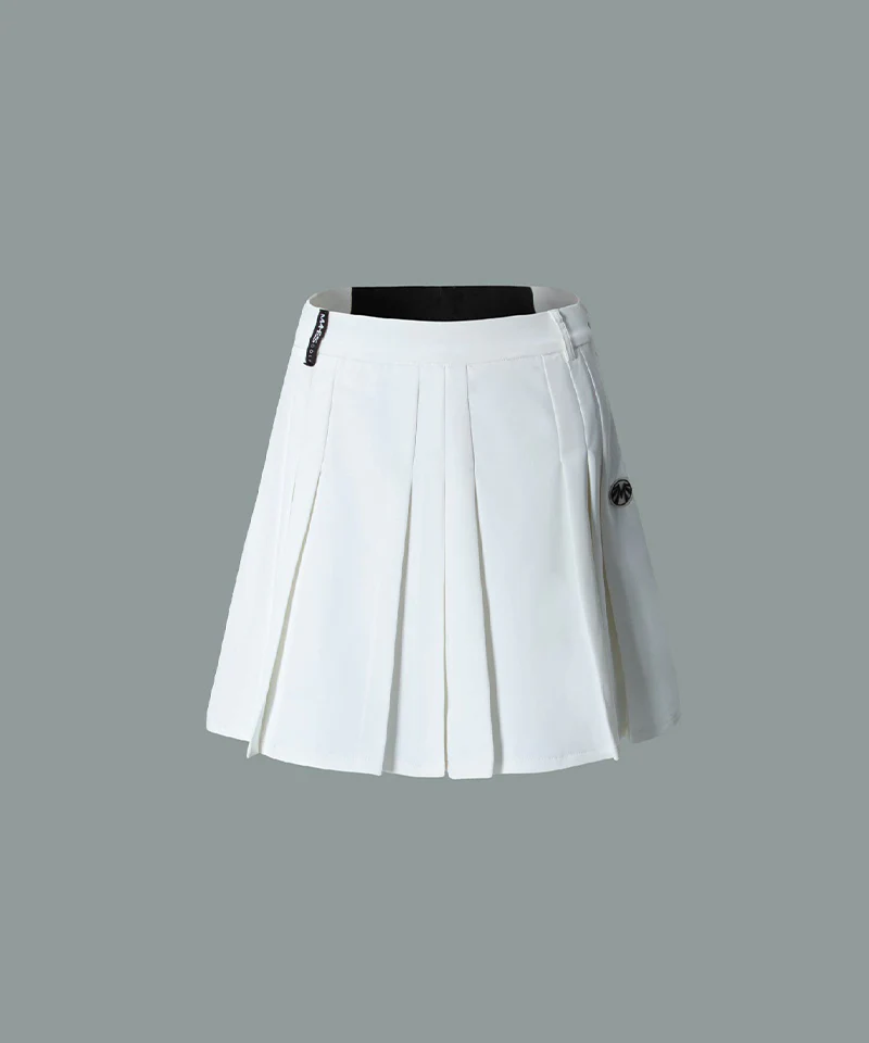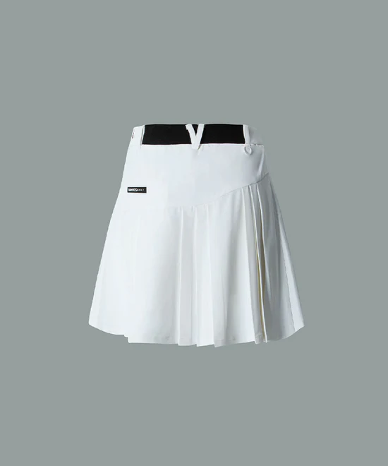 The Mahes Golf Classic Pleated Skirt features carefully crafted pleats for graceful movement and a flattering fit. Its elegant beige color suits both professional and casual styles, making it a comfortable and timeless addition to any wardrobe.