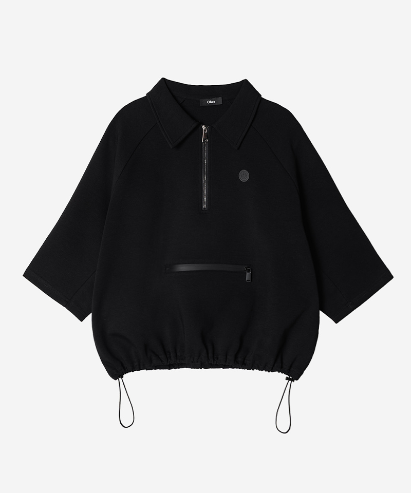 OBER Golf Women's Half-Zip-Up Overfit Short-Sleeved T-Shirt - Black