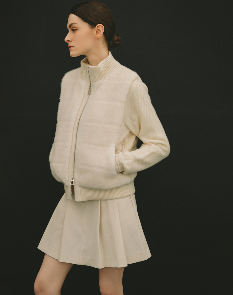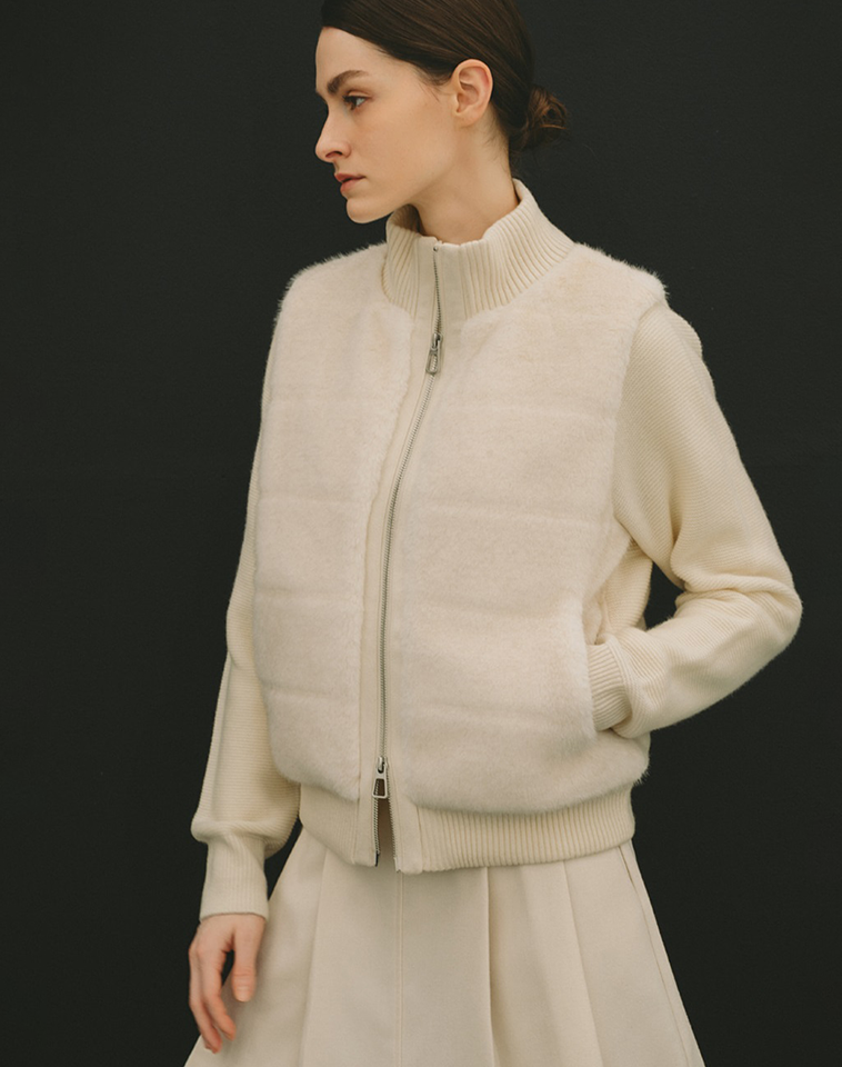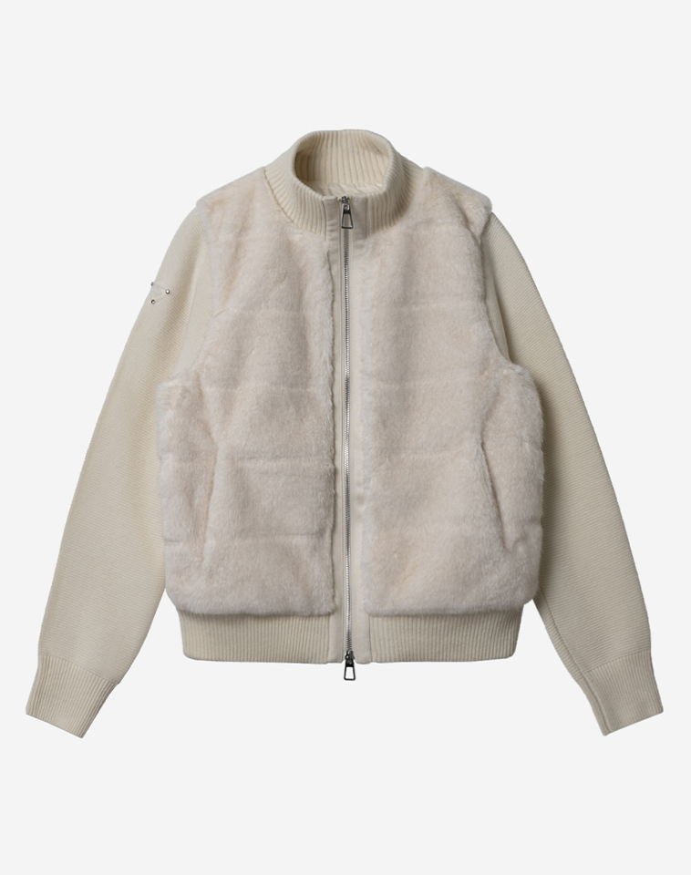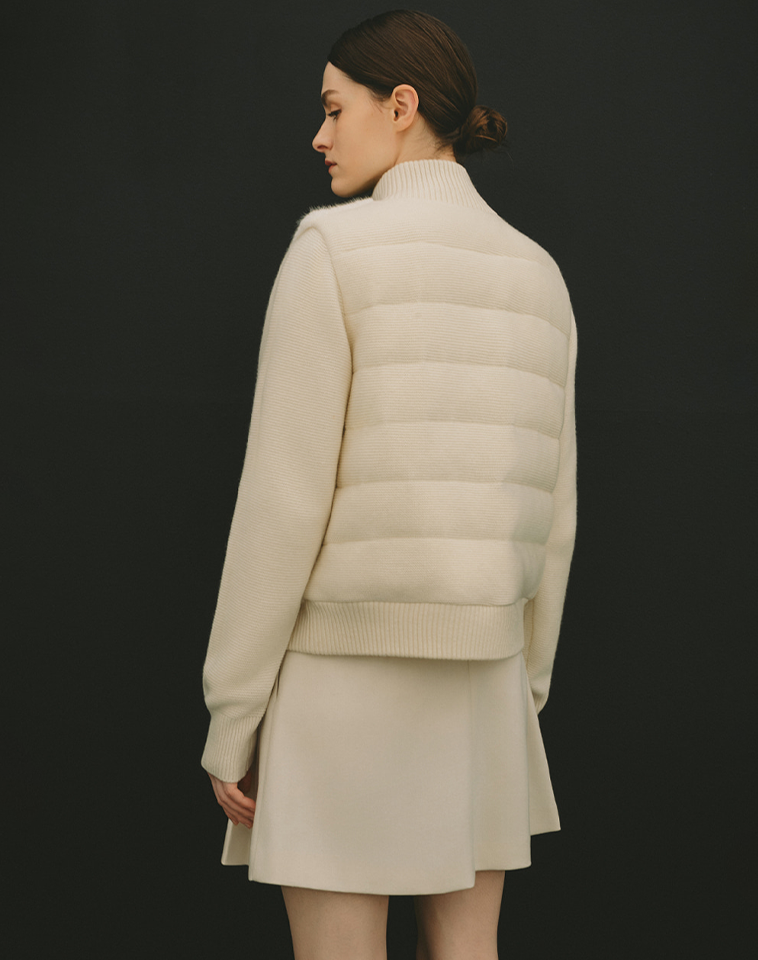 OBER Golf Women's LUX Padded Combination Wool Knit Jacket - Ivory