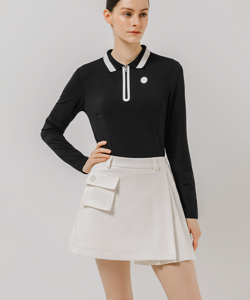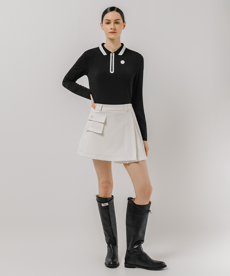 Turn heads with the Asymmetric Layering Wrap Skirt. Featuring pleated layers, 3D pockets, and a wrap design, it blends sporty flair with classic elegance. Integrated inner pants provide comfort and coverage, making it perfect for the course or everyday wear.